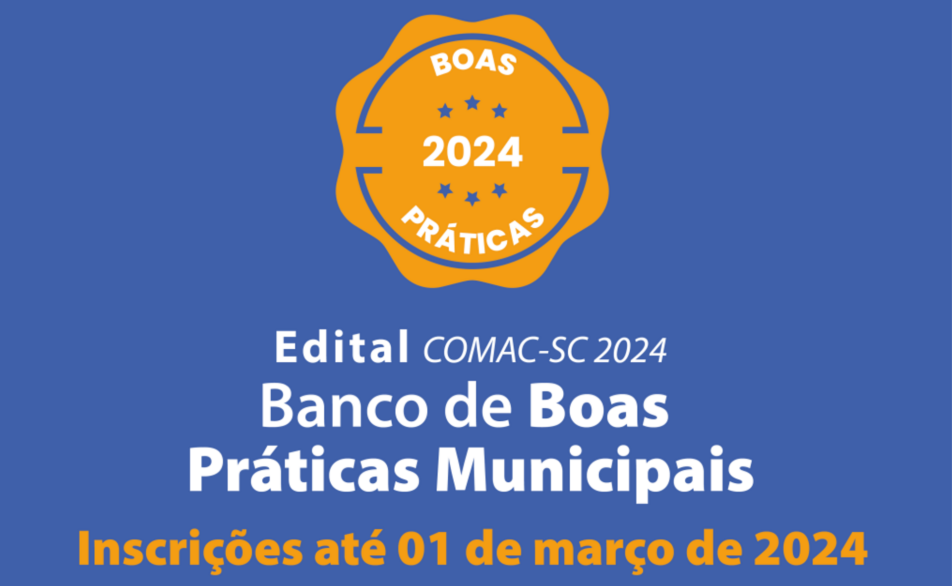 A Federação de Consórcios, Associações de Municípios e Municípios de Santa Catarina (FECAM) abriu uma chamada pública para selecionar Boas Práticas Municipais que serão apresentadas no COMAC-SC, o Congresso de Municípios, Associações e Consórcios de Santa Catarina. As iniciativas devem ser inéditas, ou seja, não podem ter sido selecionadas em edições anteriores do evento e devem estar alinhadas à Agenda 2030 e aos 17 Objetivos do Desenvolvimento Sustentável, da Organização das Nações Unidas (ONU). O COMAC-SC será realizado entre os dias 03 e 05 de abril, no ExpoCentro de Balneário Camboriú.