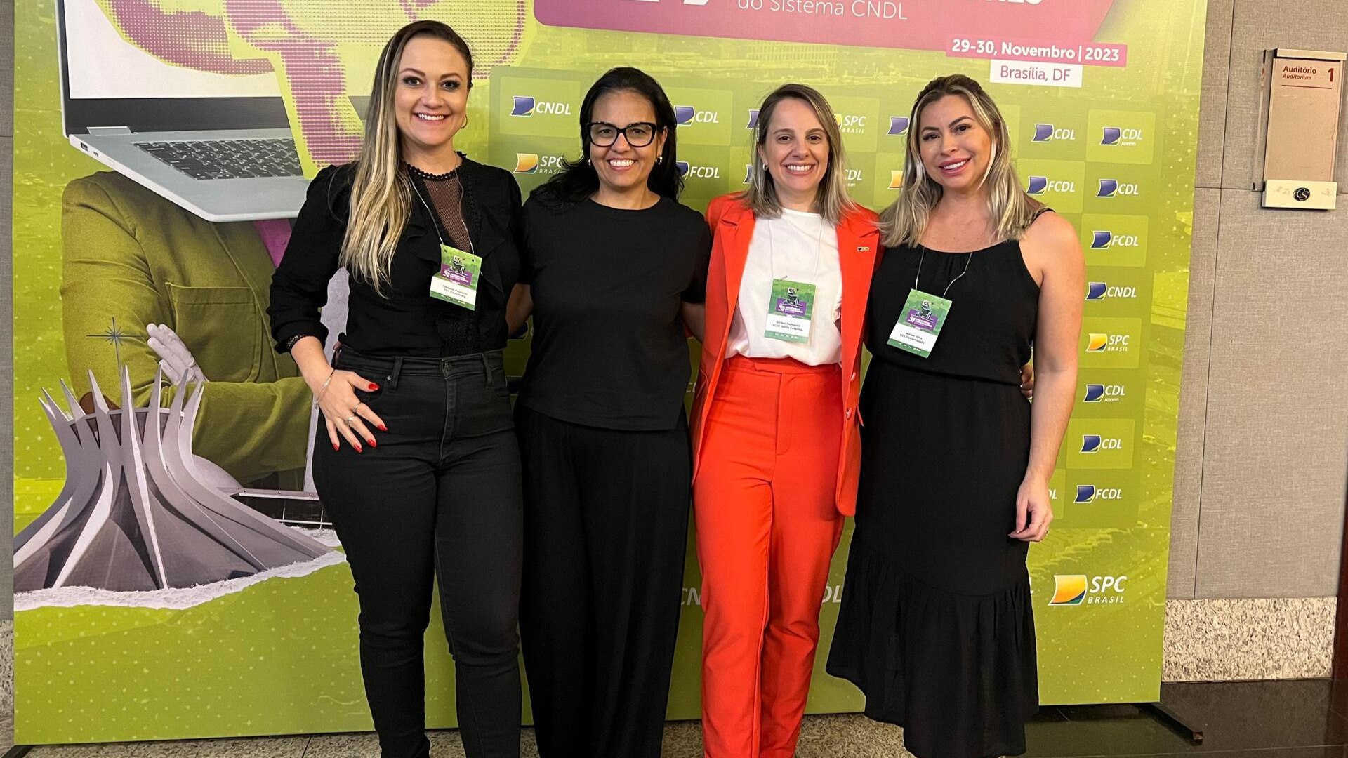 Fabi Passarin, coordenadora de comunicação e marketing da CDL de Concórdia, Juliana Soares, coordenadora de comunicação da CDL de Itajaí; Dirleni Dalbosco, coordenadora de comunicação da FCDL/SC; e Miriam Morfim da Silva, assessora de imprensa da CDL Florianópolis, foram as representantes da FCDL de Santa Catarina ao evento (Fotos: Divulgação)