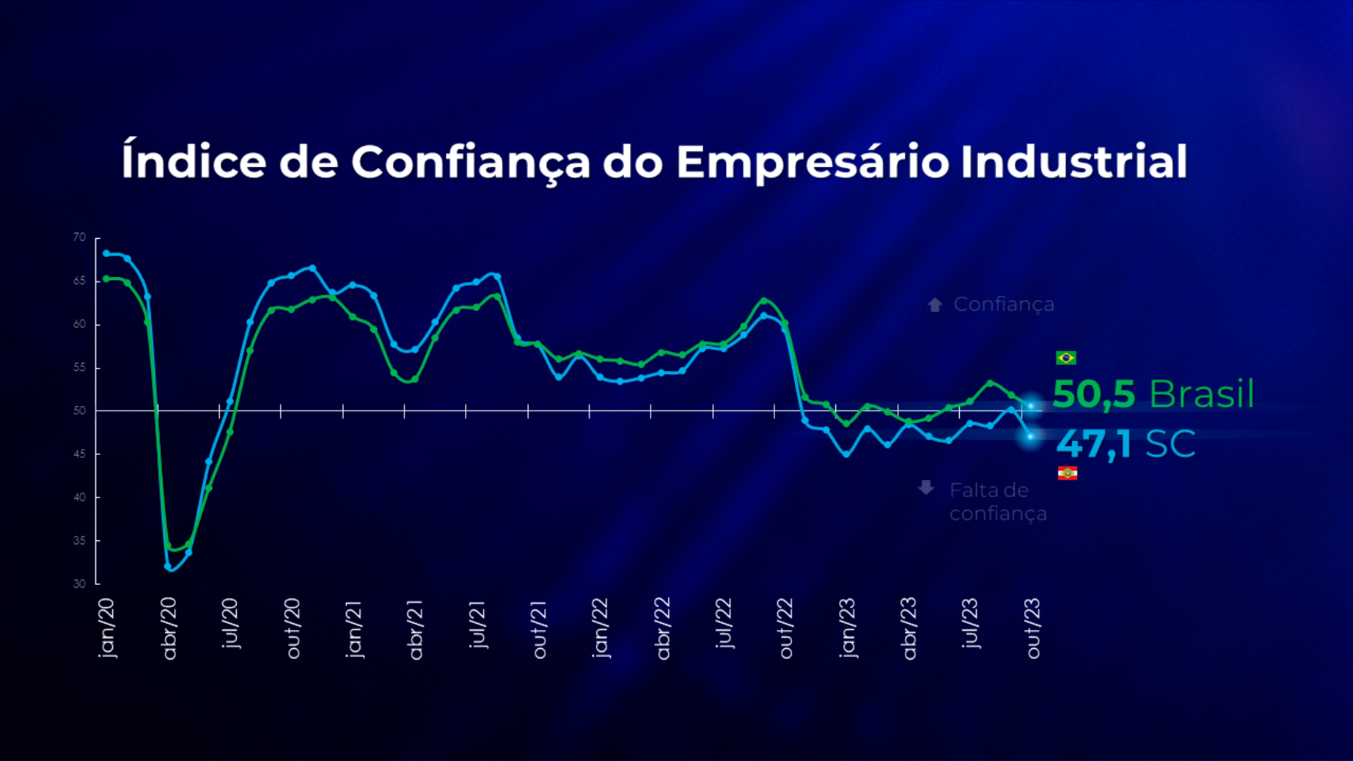 Gráfico mostra a confiança no setor da indústria de Santa Catarina e no Brasil (Fotos: Arte fiesc)