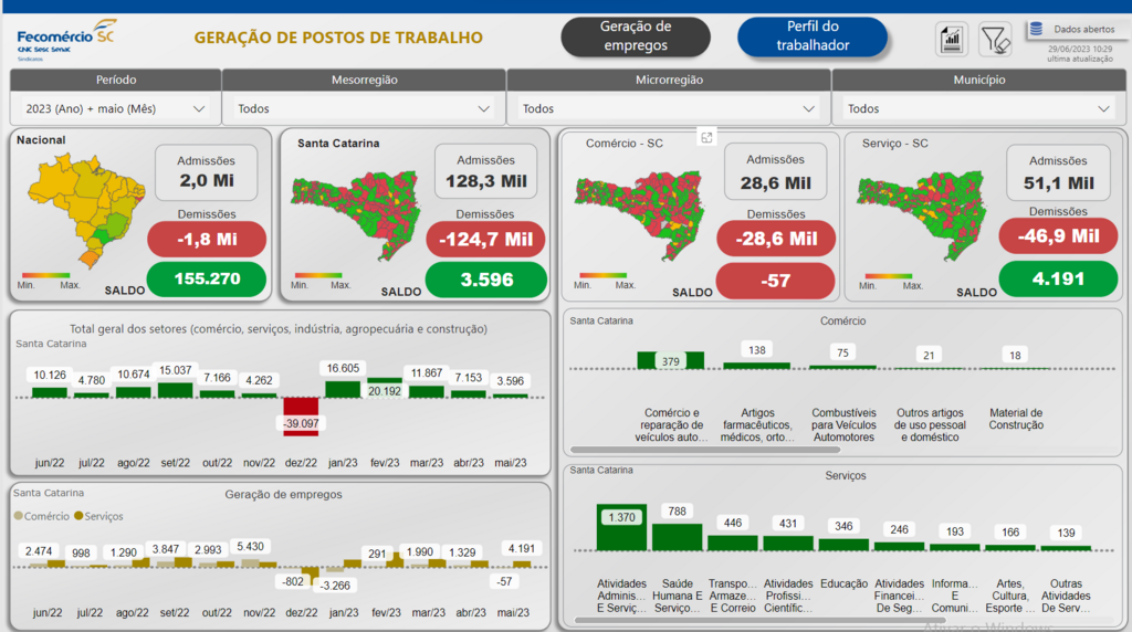No cenário nacional, o resultado é semelhante. Com saldo de 155.270 novas vagas, maio apresentou recuo de -14,4% no saldo das contratações de abril (181.436) e, no ano, só é maior do que o de janeiro (86.099). Após, o ápice em fevereiro (248.937) o saldo tem sido decrescente mês a mês. Na comparação com o resultado de maio de 2022 (277.736) há uma queda de -44,1%.