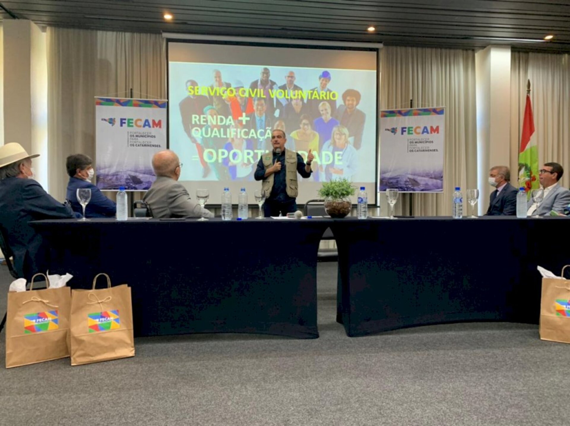 Qualificação para trabalhadores desempregados combinado com a execução de atividades de interesse público nos municípios participantes é o foco do Programa Nacional de Serviço Civil Voluntário - Cursos de Qualificação para Trabalhadores Desempregados. O programa foi tema de uma apresentação feita pelo ministro do Trabalho e Previdência, Onyx Lorenzoni, aos prefeitos de Santa Catarina.