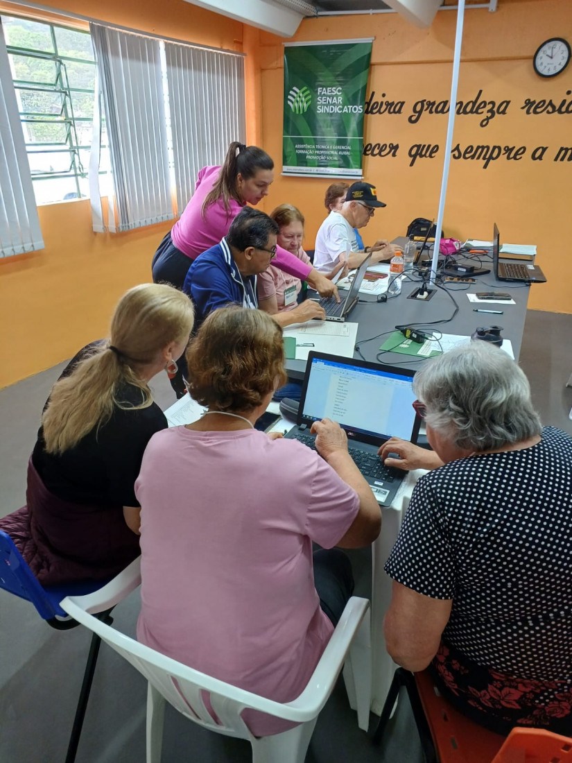 Treinamento de Informática Básica 1 está entre os cursos muito procurados. Regristro de recente turma em Rio do Sul (Fotos: Divulgação Sistema Faesc/Senar/Sindicato)