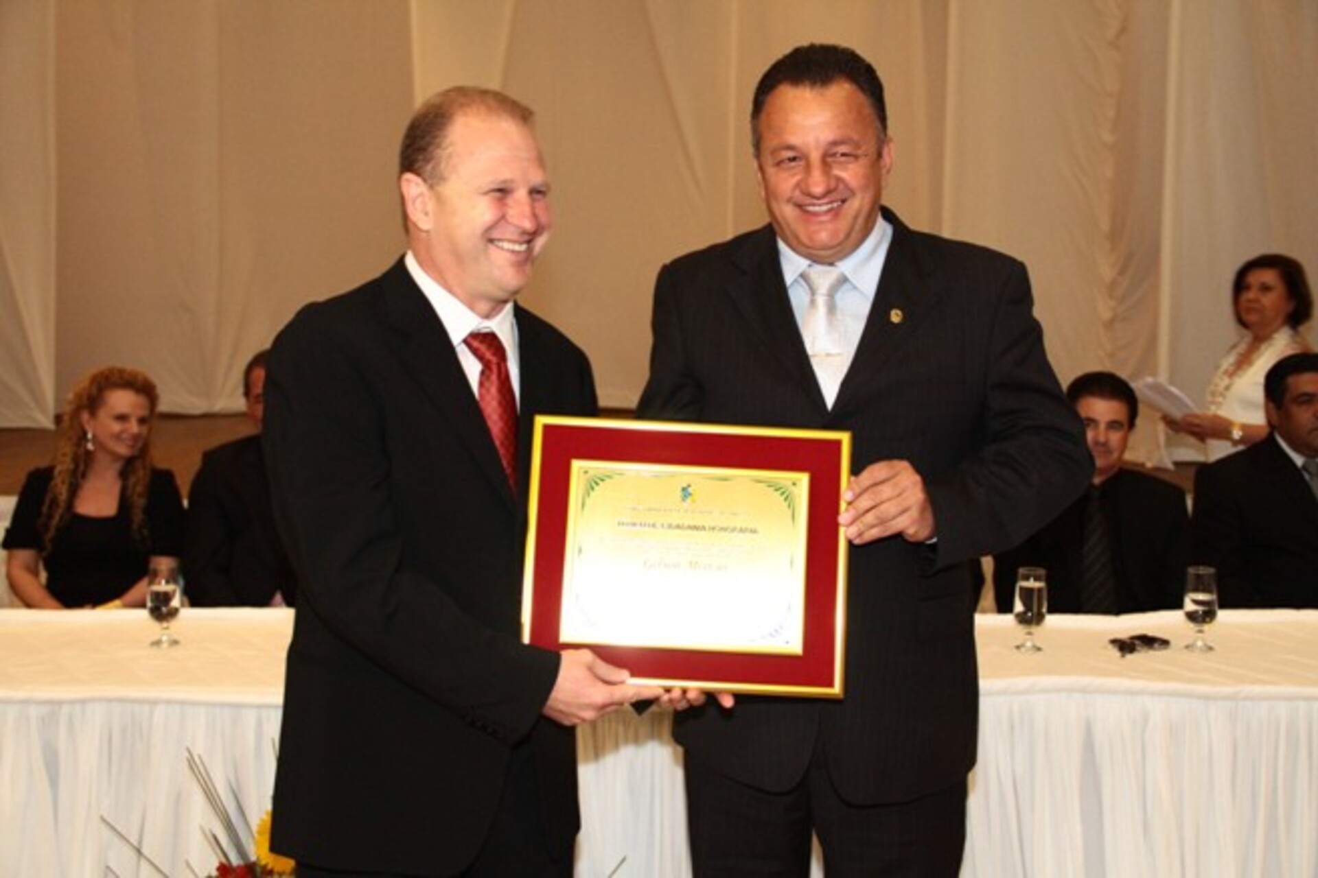 O presidente da Assembleia Legislativa de Santa Catarina, deputado Gelson Merisio (PSD), recebeu na quinta-feira (13) o título de cidadão xanxerense. A solenidade proposta pela Câmara Municipal reuniu autoridades, familiares e amigos no Clube Cultural e Recreativo Xanxerê. A concessão do título foi marcada pela entrega da placa que simboliza o reconhecimento do Legislativo Municipal a atuação do parlamentar, na busca de recursos, bem como a contribuição política e social em prol do desenvolvimento e crescimento de Xanxerê.