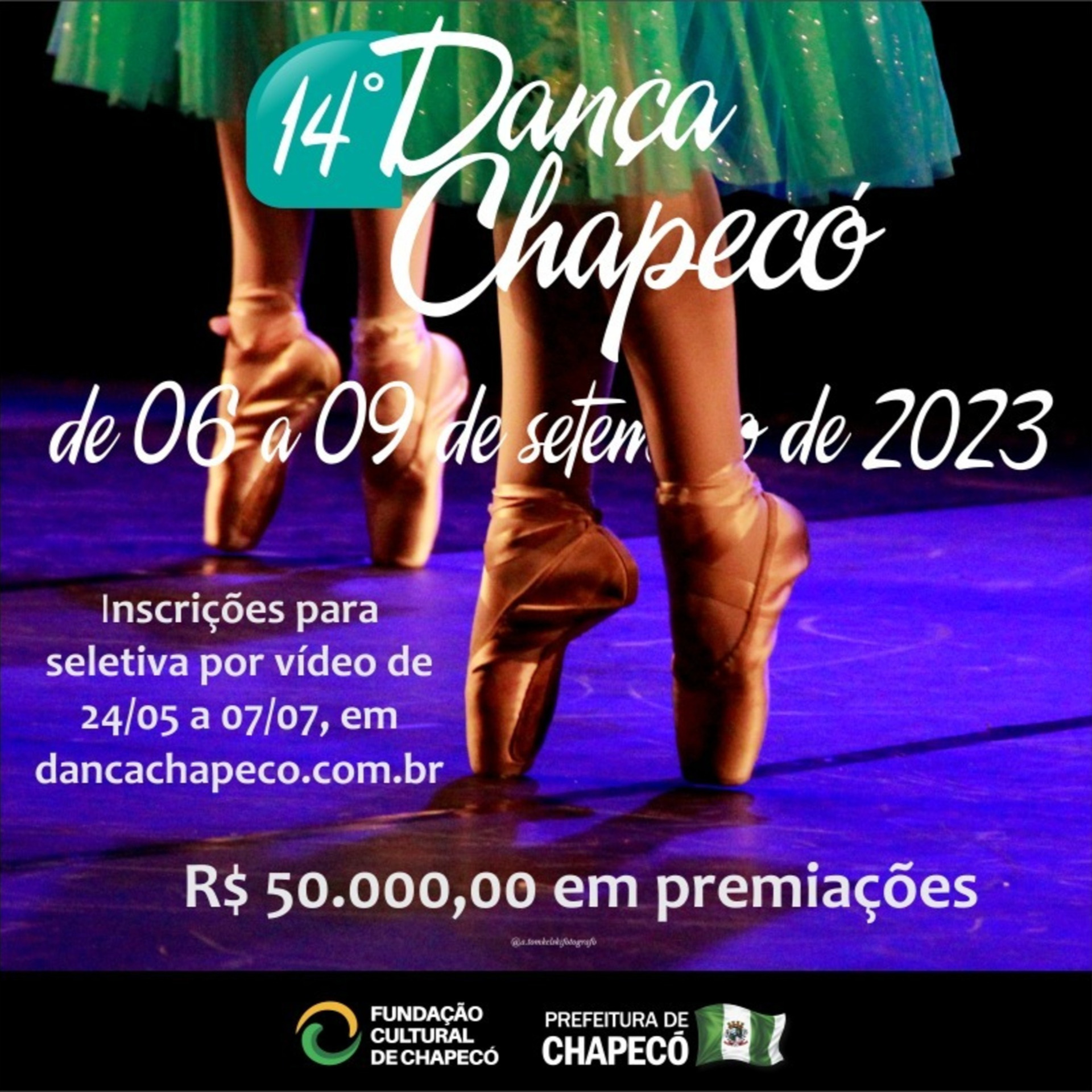 As inscrições serão realizadas de forma online, no site www.dancachapeco.com.br, até o dia 07 de julho