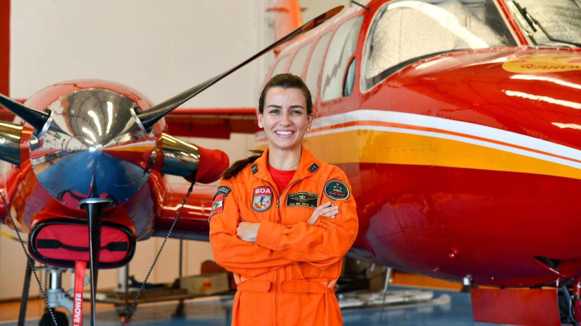 1ª Tenente Fernanda Corrêa Reck é a primeira oficial bombeira militar habilitada como piloto de avião multimotor (Fotos: Eduardo de Souza / CBMSC)