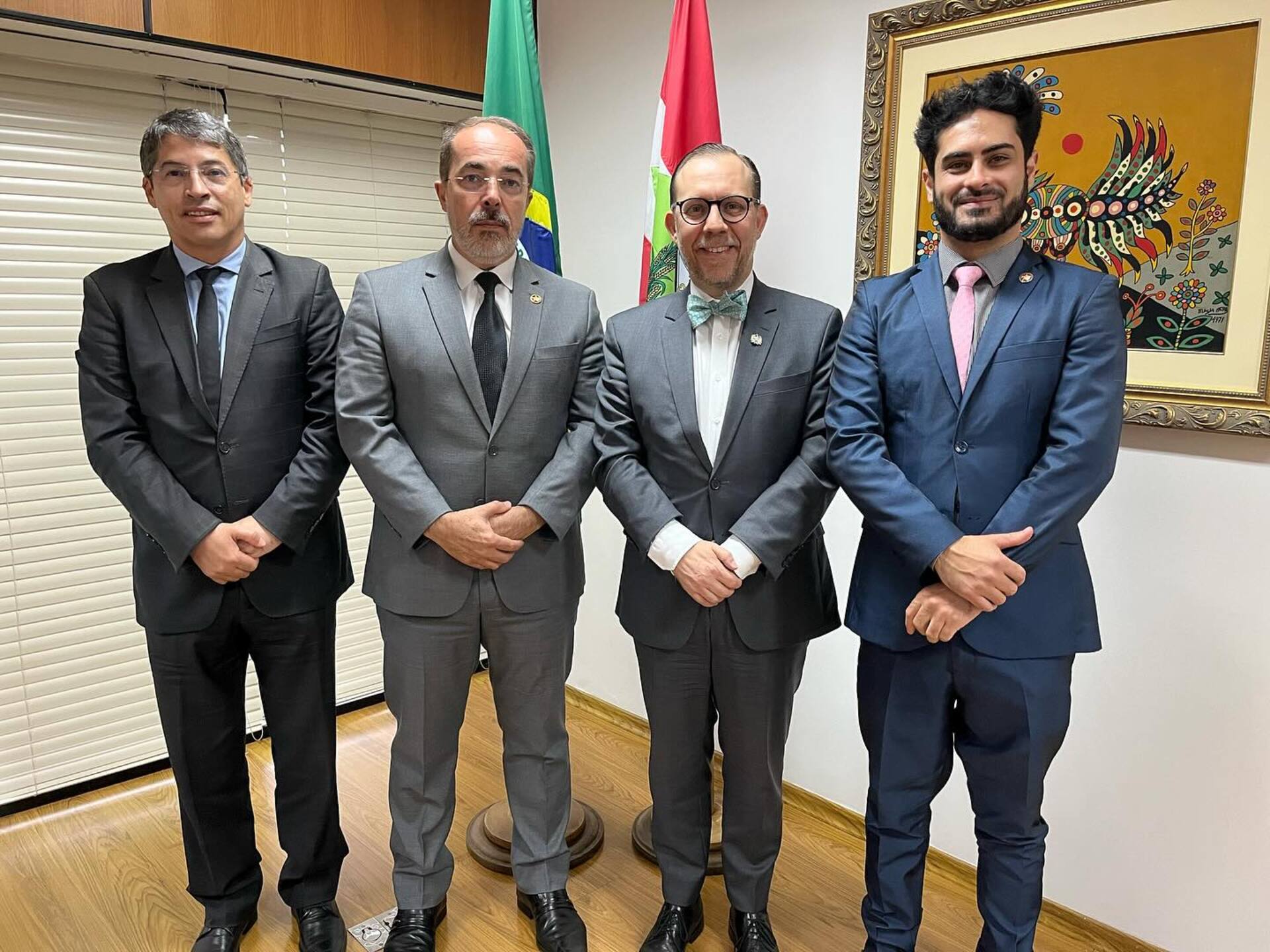 O presidente da Associação de Oficiais Militares do Estado de Santa Catarina (ACORS), Coronel Sérgio Luís Sell, reuniu-se nesta tarde (11) com o procurador-geral do Estado, Márcio Vicari, nas instalações da Procuradoria-Geral do Estado (PGE). O encontro teve como foco abordar questões institucionais relacionadas aos Oficiais Militares de Santa Catarina e seus interesses. Além do presidente da ACORS, estiveram presentes na reunião o dr. Noel Baratieri e o dr. Maicon Antunes, representantes do escritório Baratieri Advogados, responsável pelo suporte jurídico à ACORS.