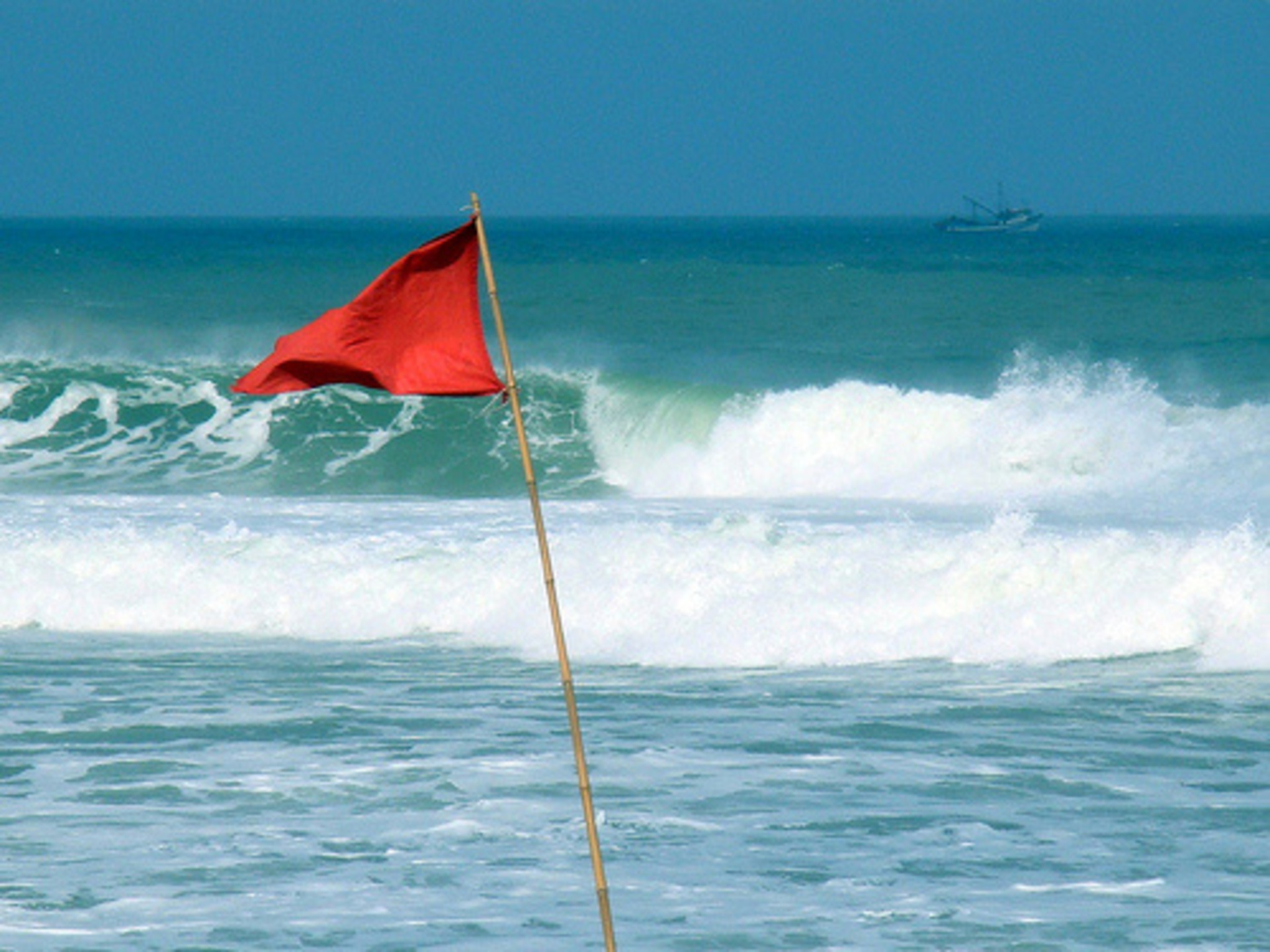A Bandeira Vermelha mostra que o mar está perigoso e que se deve evitar nadar e até mesmo entrar na água. Esta bandeira é um alerta da maior importância e deve ser prontamente cumprido.