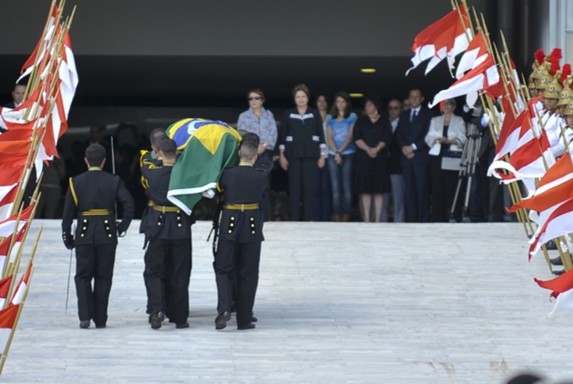 O corpo está sendo velado no Salão Nobre do Palácio. Mais de 30 coroas de flores foram mandadas para a cerimônia de despedida enviadas, por exemplo, pelo ex-presidente Luiz Inácio Lula da Silva e pelos governadores Antonio Anastasia (Minas Gerais), Sérgio Cabral (Rio de Janeiro) e Agnelo Queiroz (Distrito Federal).