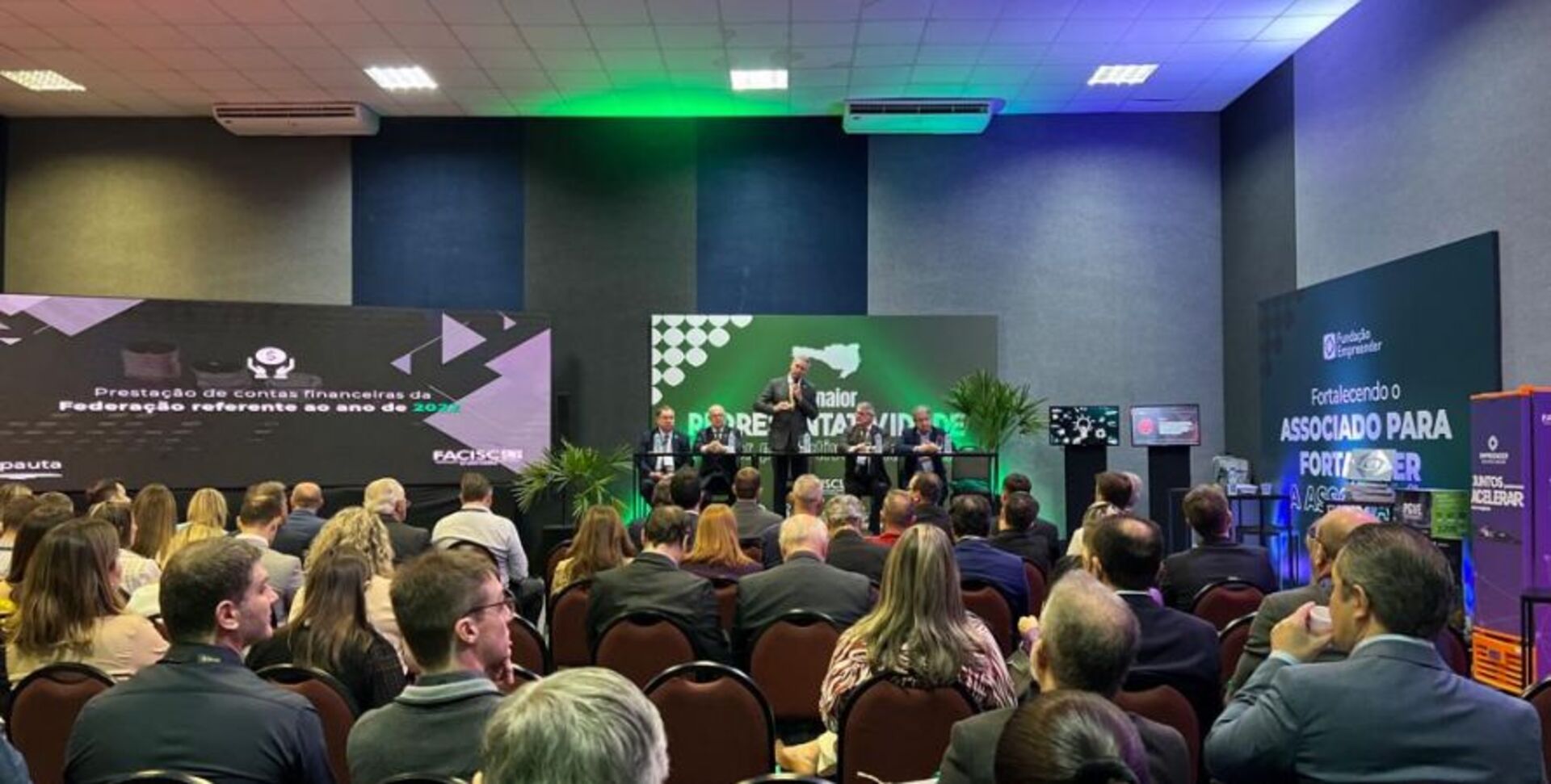 Presidentes e diretores das associações empresariais de Santa Catarina participaram nesta quarta-feira, 28/6, da Assembleia Geral Extraordinária (AGE) do Conselho Diretor da Facisc realizada durante a ExpoGestão em Joinville.