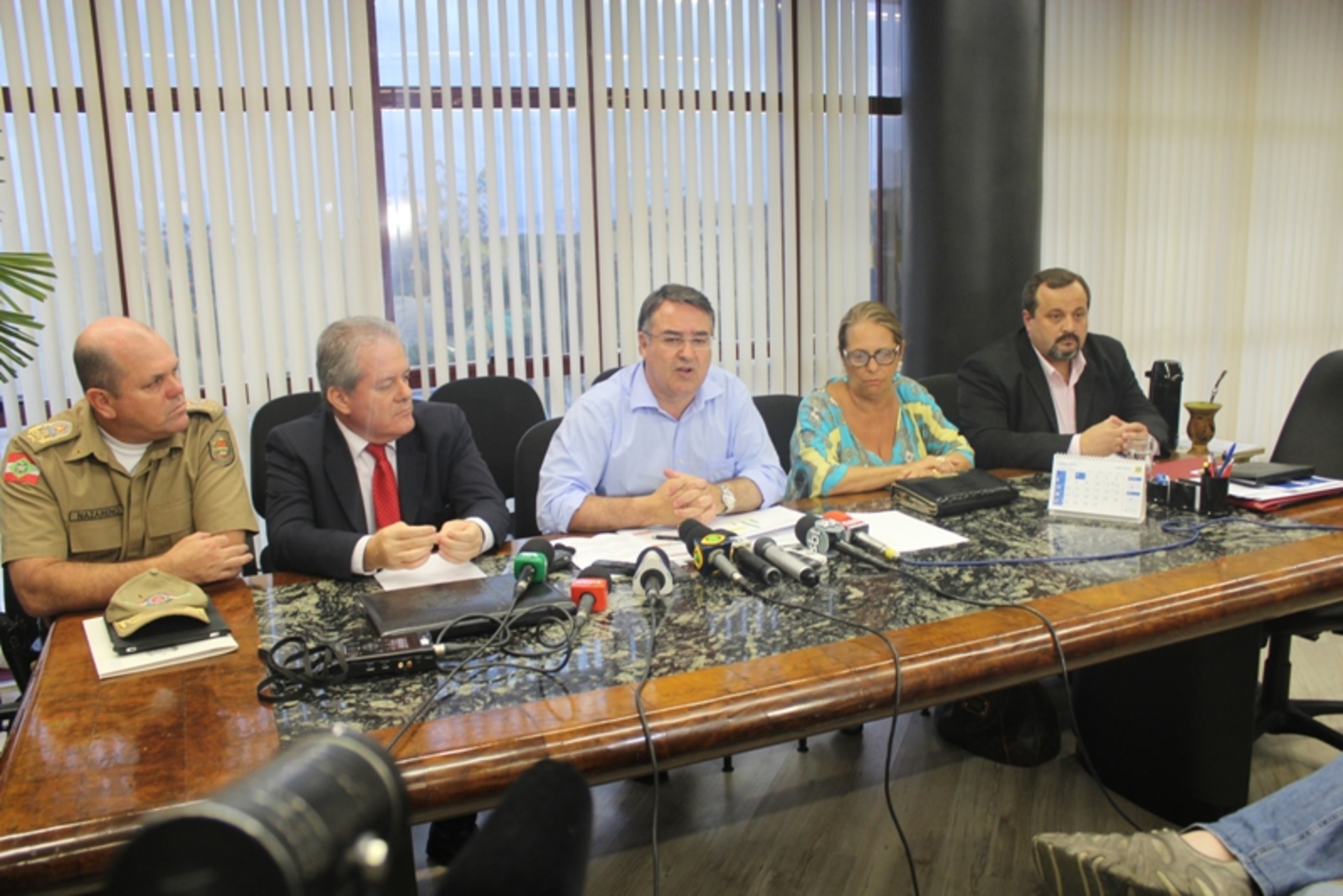 Tendo ao lado o secretário de Estado da Segurança Pública, Cesar Grubba; a secretária da Justiça e Cidadania, Ada De Luca; o comandante da Polícia Militar, Nazareno Marceneiro; e o diretor do Departamento de Administração Prisional, Leandro Lima, o governador Raimundo Colombo destacou também que desta vez a inteligência policial conseguiu prevenir uma série de atentados, utilizando a experiência dos atentados realizados em novembro do ano passado.