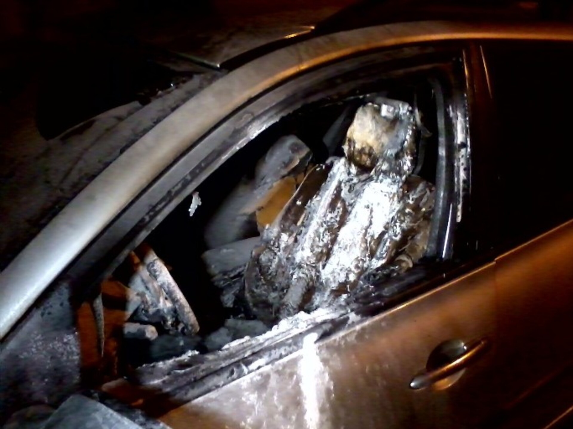 Em Brusque, homens jogaram pedras em um carro, quebrando o vidro e atearam fogo. (Fotos: )
