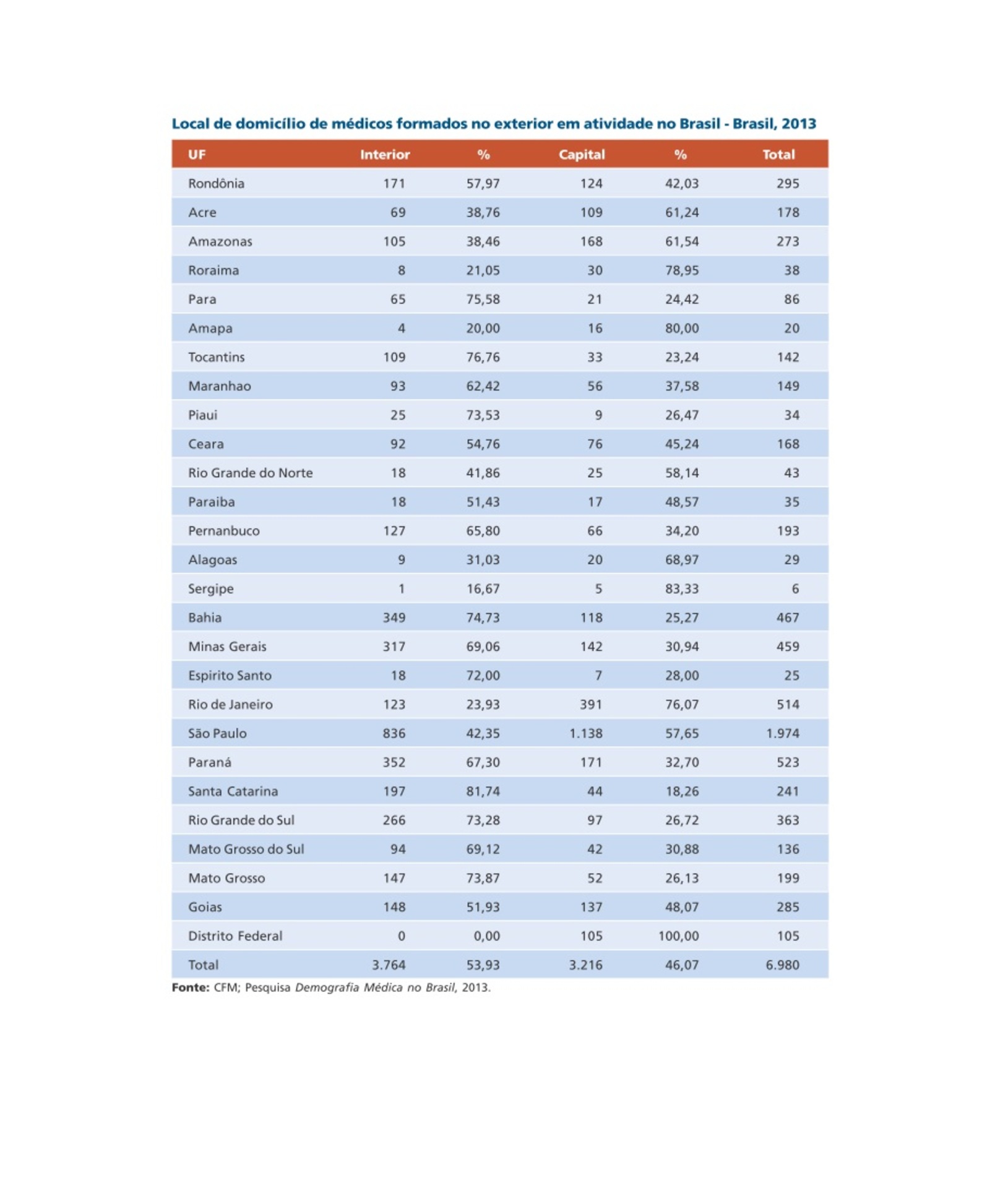 “Sem um planejamento adequado e sem uma visão de longo prazo, a entrada destes profissionais no mercado apenas acirrará a diferença que existe atualmente. Os egressos das escolas brasileiras ou aqueles que veem do exterior encontraram as mesmas dificuldades que enfrentamos: falta de estrutura para o trabalho, ausência de uma política de recursos humanos, entre outros pontos. Podem até ficar por algum tempo, mas depois se mudarão para as capitais e os centros mais desenvolvidos em busca de expectativas”, ressaltou o presidente do CFM, Roberto Luiz d’Avila.