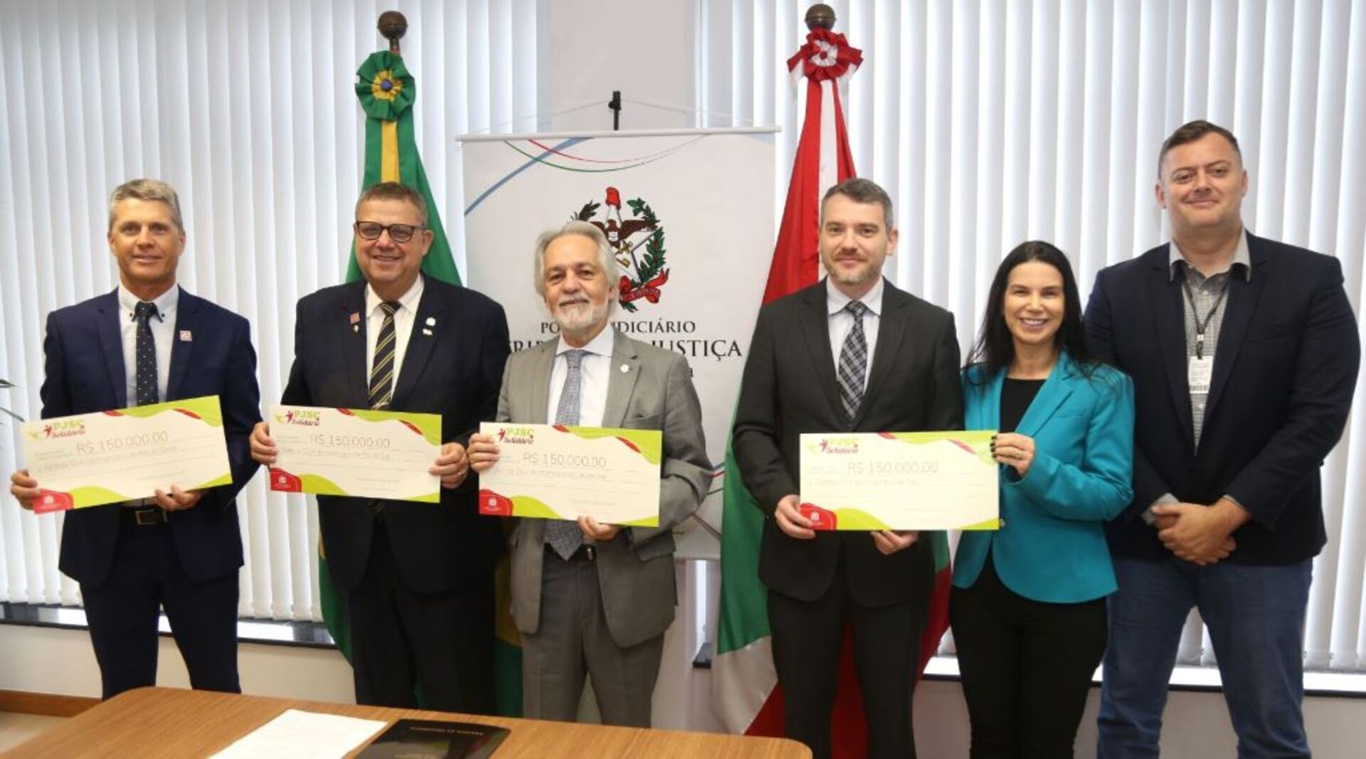 A cerimônia de entrega dos recursos aconteceu no Salão Nobre da Presidência do Tribunal de Justiça de Santa Catarina (TJSC), com a presença do presidente do TJ, desembargador João Henrique Blasi, do juiz-corregedor Marlon Negri, representando a corregedora-geral da Justiça, desembargadora Denise Volpato, do secretário de Estado da Proteção e Defesa Civil (SDC), Coronel Armando, do secretário-adjunto da SDC, Coronel Flávio Rogério Pereira Graff, e demais autoridades.