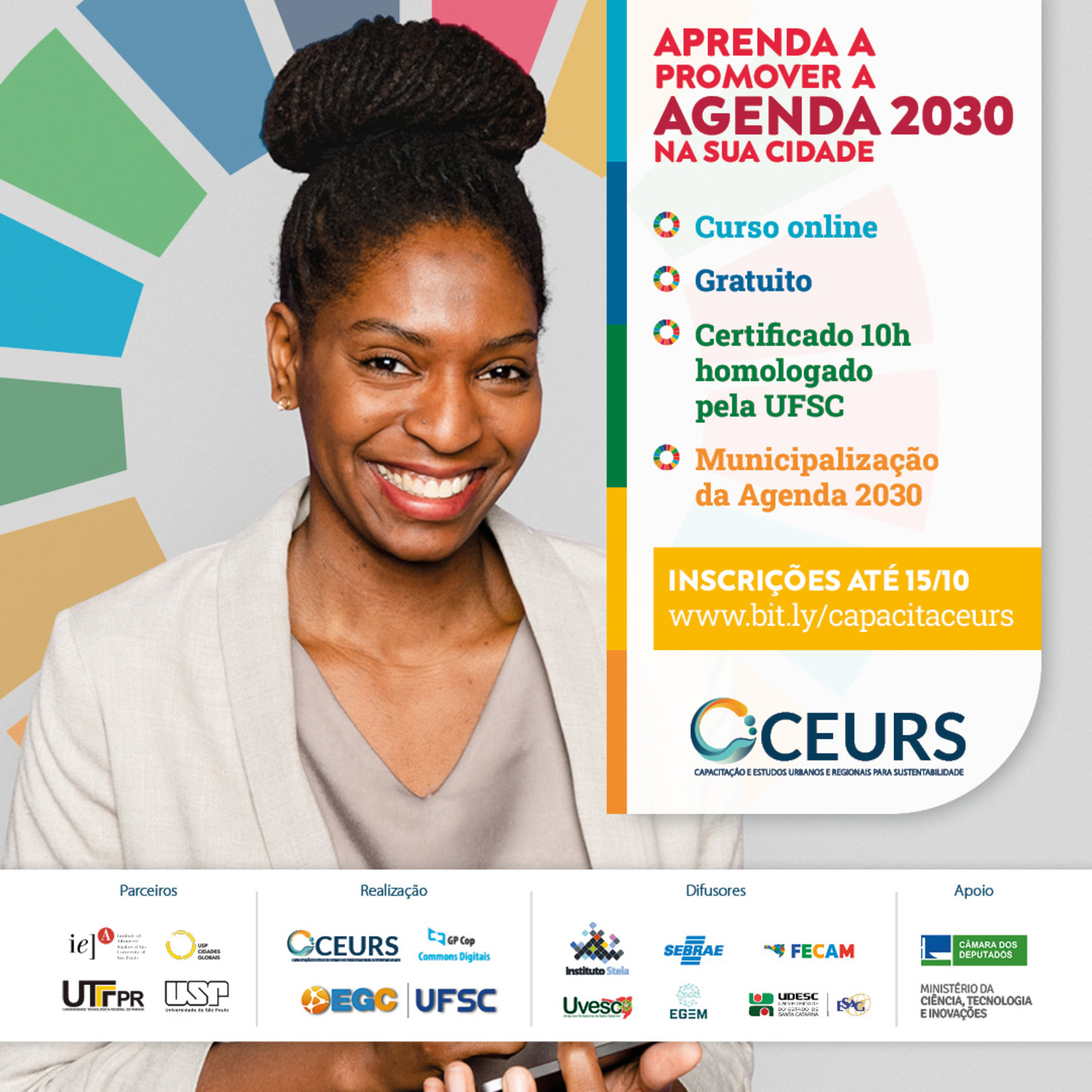 O Programa Capacitação e Estudos Urbanos para Sustentabilidade (CEURS) da Universidade Federal de Santa Catarina (UFSC) estão com inscrições abertas para o curso de Municipalização da Agenda 2030. Uma capacitação on-line e gratuita sobre desenvolvimento urbano e sustentável.