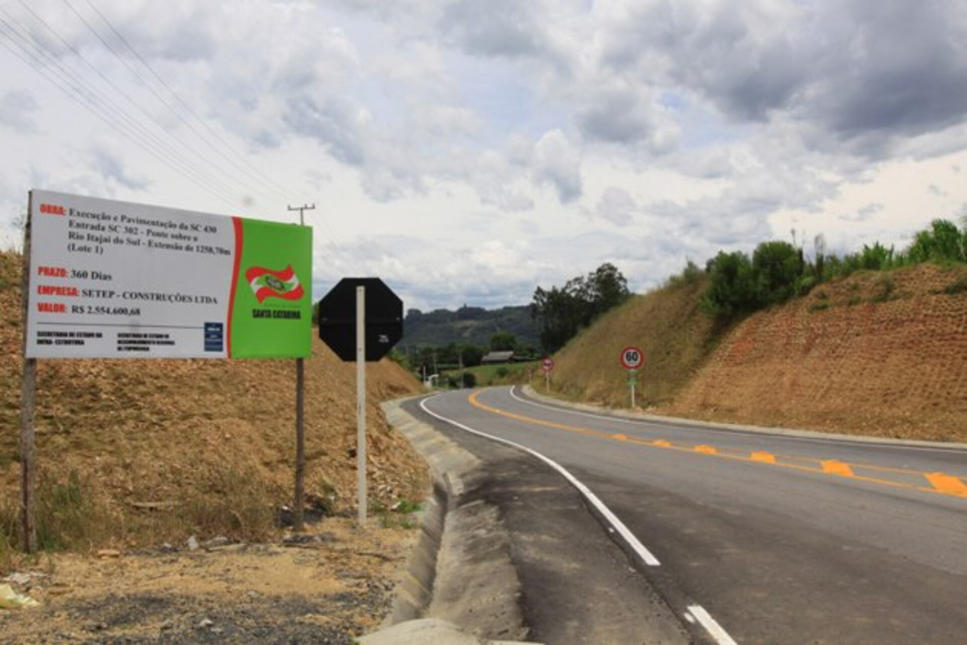 A pavimentação do trecho da SC-430 começou em 2010, sendo que durante a execução das obras, o projeto de construção da ponte precisou ser alterado. A altura foi ajustada de modo que o rio não transbordasse sobre a estrutura. A ponte sobre o rio Itajaí do Sul tem 196 metros de extensão e 31 de altura. "Com a obra, os moradores não precisam mais se preocupar com os problemas enfrentados nos dias de muita chuva. Antes, a água encobria o local, que ficava intransitável", destacou o secretário de Estado da Infraestrutura, Valdir Cobalchini.
