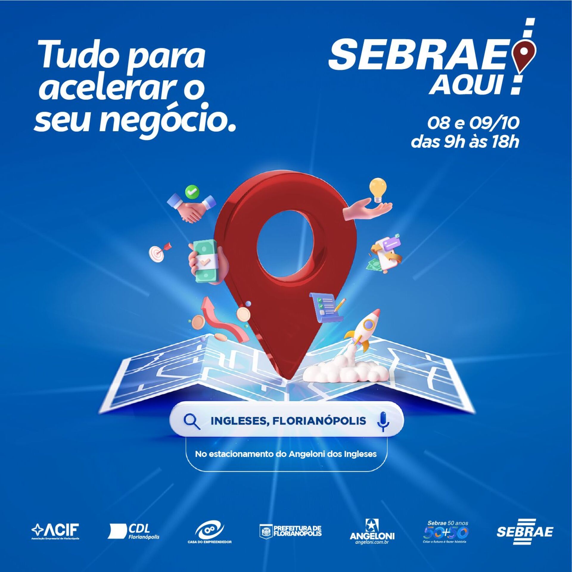 Nos dias 8 e 9 de outubro, o Sebrae/SC promove uma edição do Sebrae Aqui, ação que irá garantir atendimento ao empresário do Norte da Ilha, em Florianópolis. Durante os dois dias será montada uma estrutura de atendimento no estacionamento do supermercado Angeloni no bairro Ingleses, em que consultores e especialistas do Sebrae/SC estarão à disposição para prestar atendimento personalizado aos empresários da região. O atendimento será das 9h às 18h.