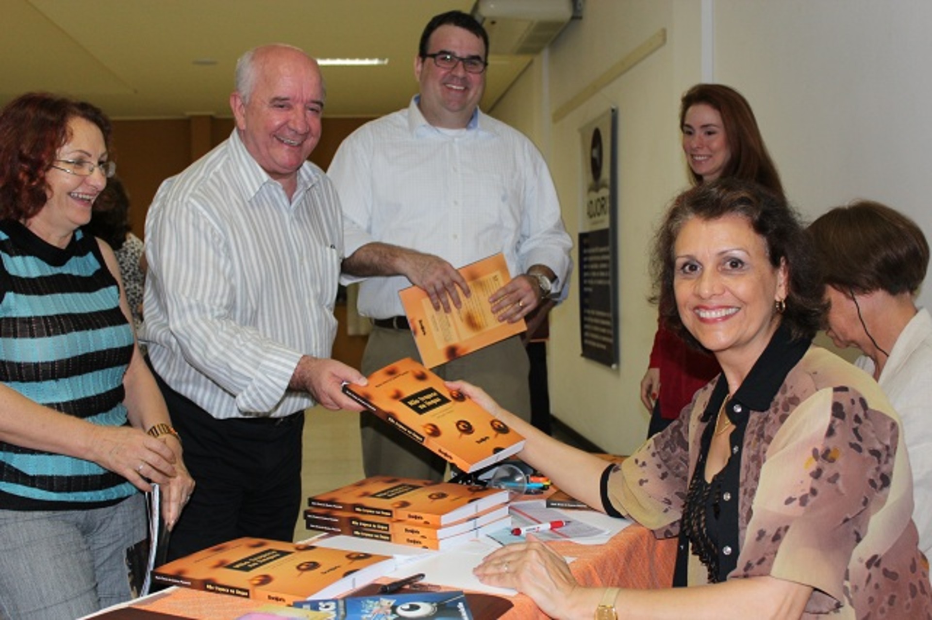 O presidente da Adjori/SC, Miguel Gobbi, recebeu um livro autografado por Tereza (Fotos: Rita Lombardi)