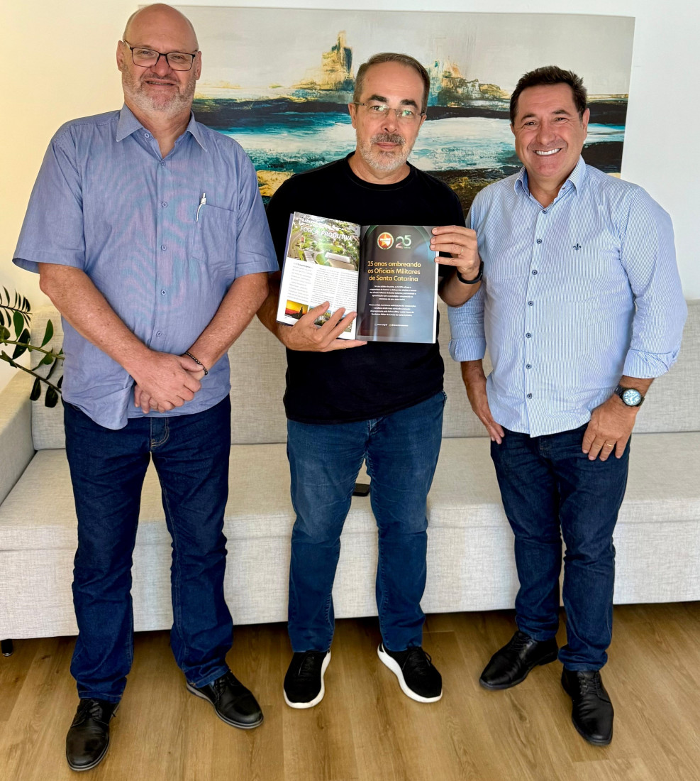 Hélio Westphal, vice-presidente da Adjoi/SC; Cel PM RR Sérgio Luís Sell, presidente da ACORS, e Jossé Roberto Deschamps, presidente da Adjori/SC (Fotos: divulgação)