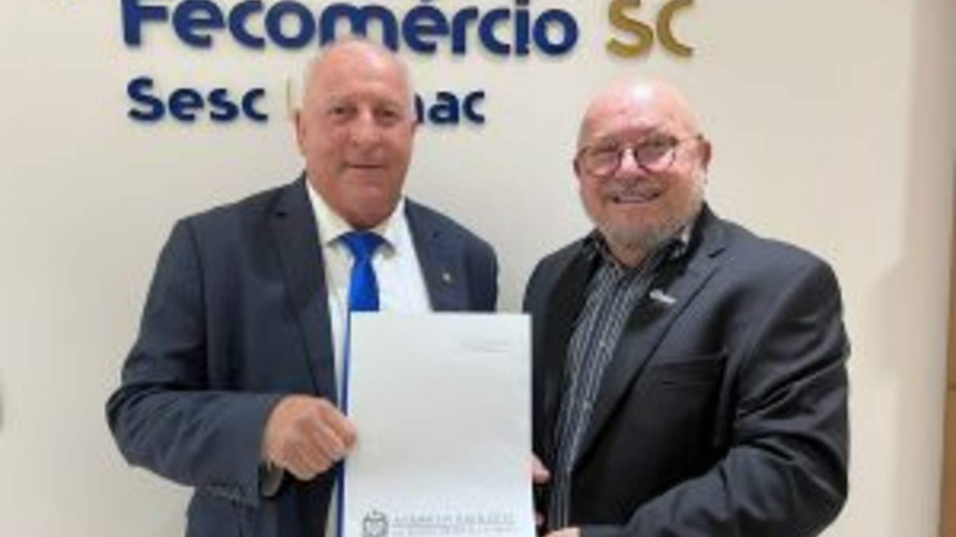 Hélio Dagnoni (direita), presidente da Fecomércio/SC, e o deputado estadual Oscar Gütz (PL) (esquerda) (Fotos: )