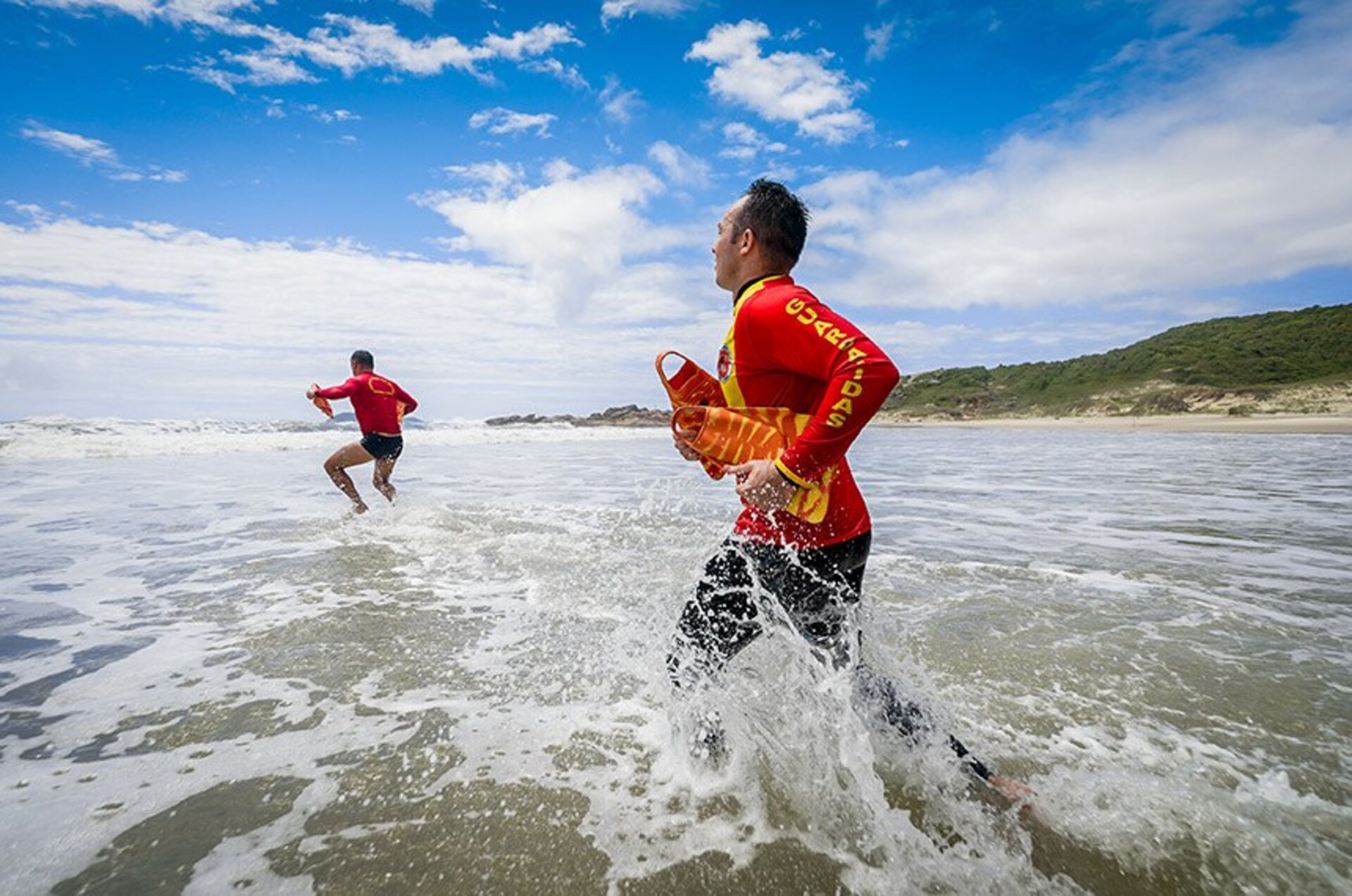 Integrantes do Corpo de Bombeiros Militar de Santa Catarina atuando como salva-vidas em praia do estado (Fotos: FOTO: Secom-SC)