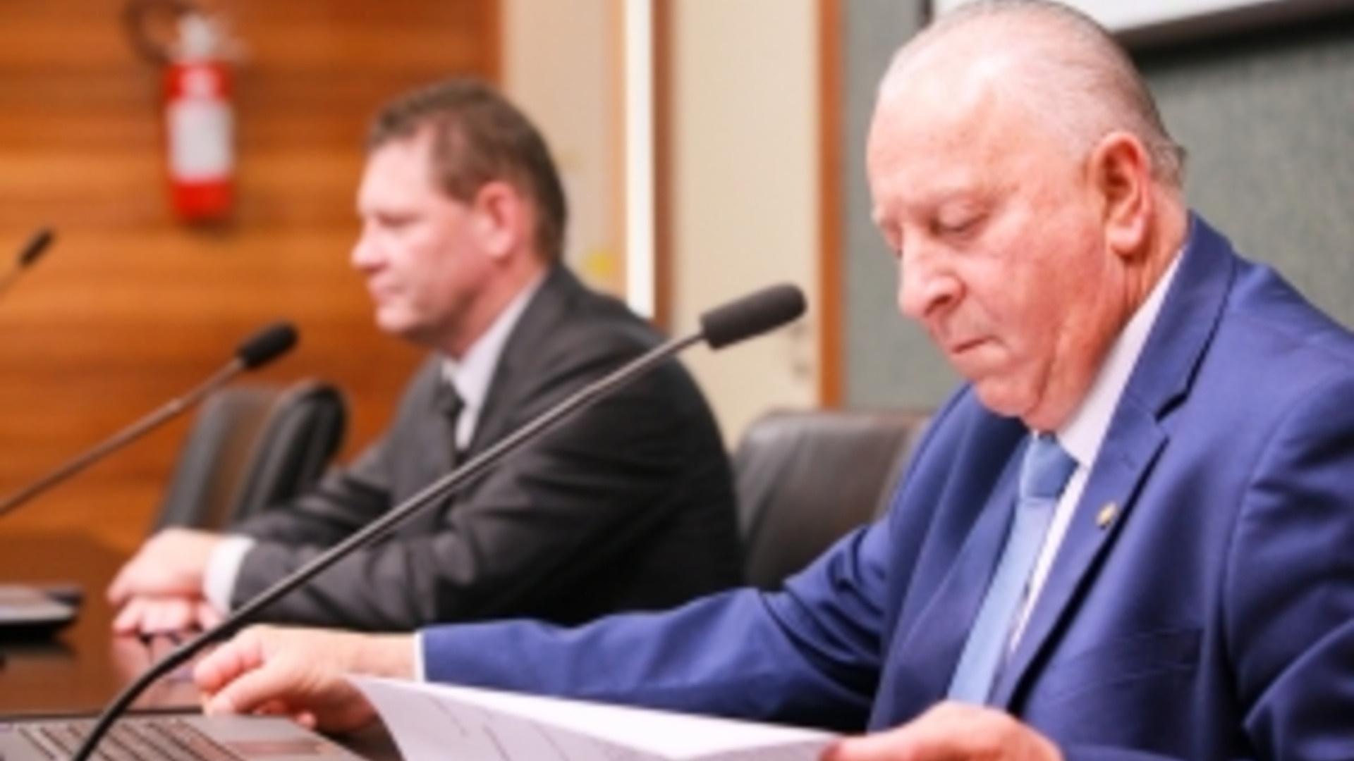 Os deputados estaduais Oscar Gutz (PL) e Edilson Massocco (PL) presentes na comissão de agricultura e política rural (Fotos: Giovanni Kalabaide)