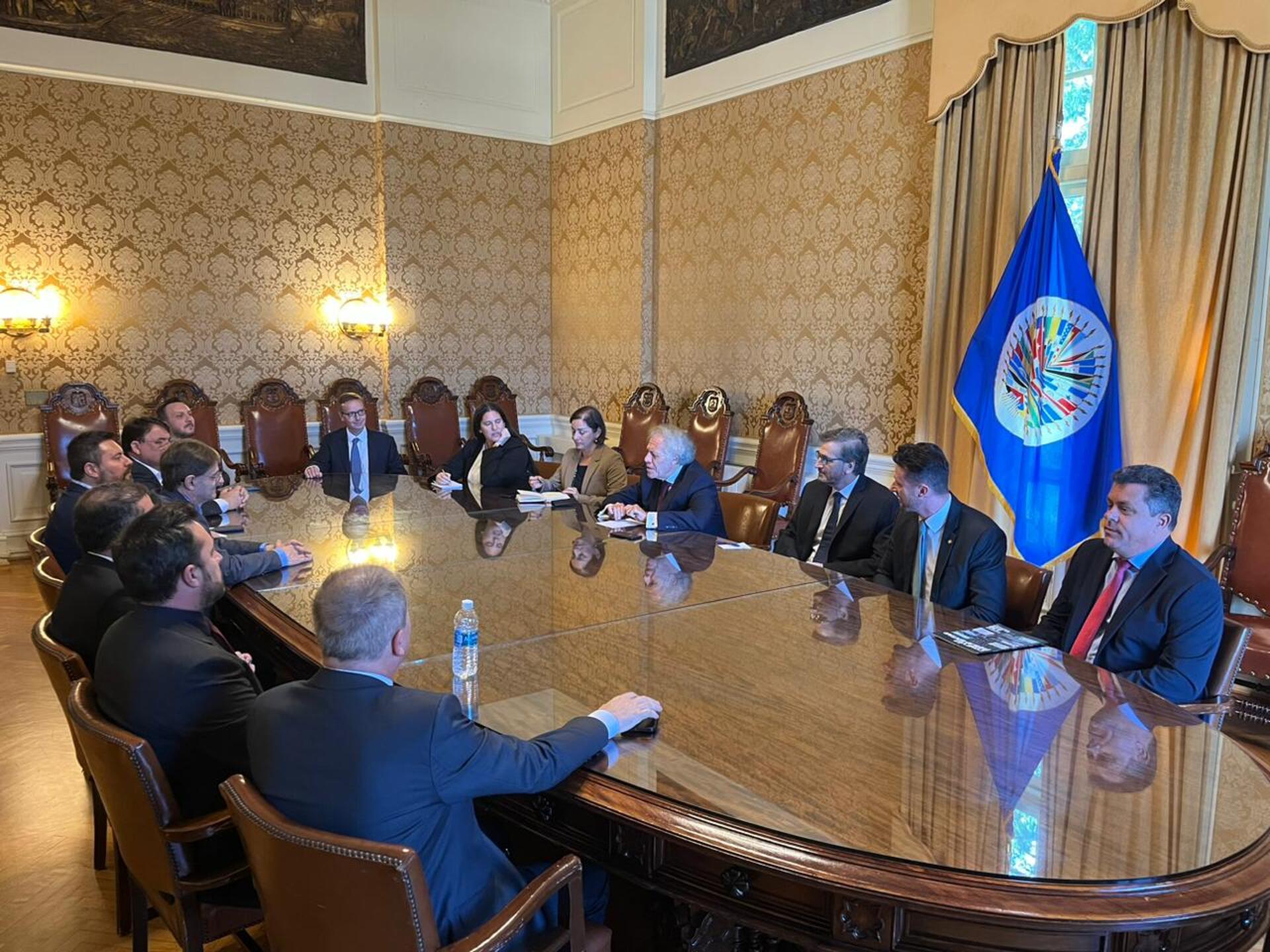 Reunião da delegação parlamentar catarinense, liderada pelo deputado Ivan Naatz (PL) sede da OEA, com o Secretário Geral, Luiz Almagro. (Fotos: Divulgação/Alesc)