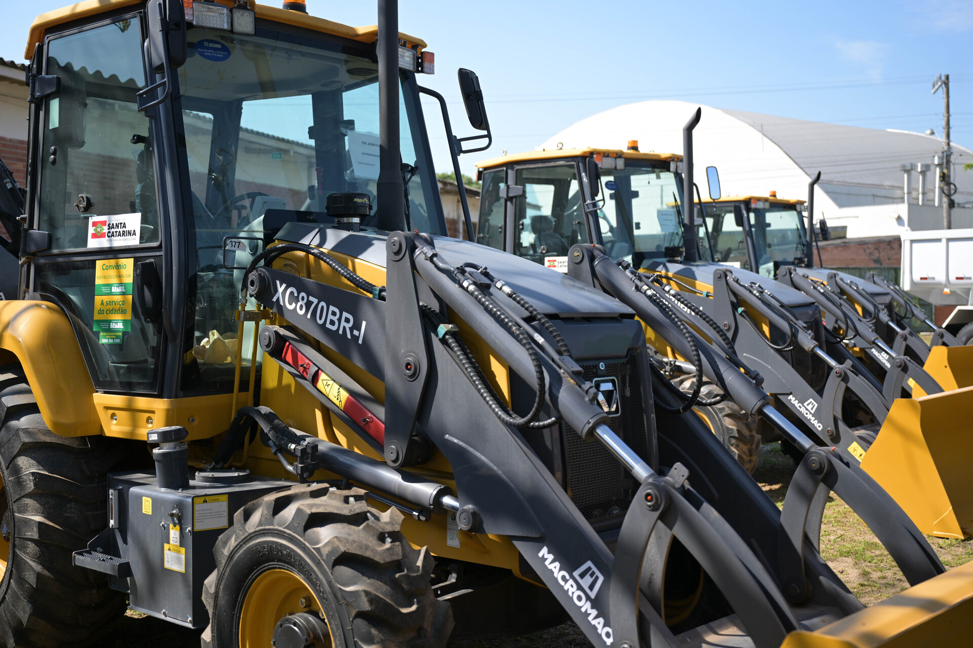 São 11 retroescavadeiras, quatro tratores de 75CV, um trator de 105CV e dois caminhões basculantes que irão modernizar e fomentar o trabalho no campo em 18 municípios.