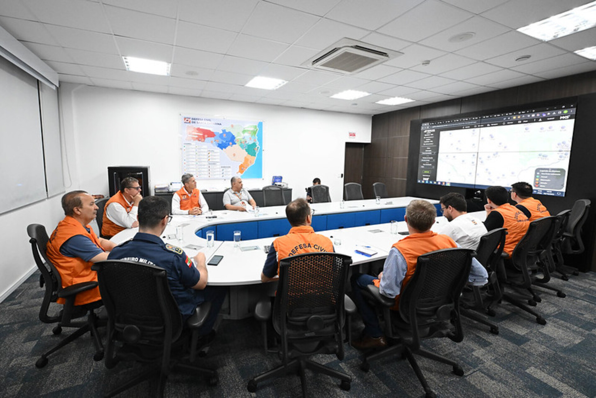 Govenador esteve com a equipe da Defesa Civil estadual de SC, em Florianópolis, onde avaliou as informações mais atualizadas sobre as chuvas no estado