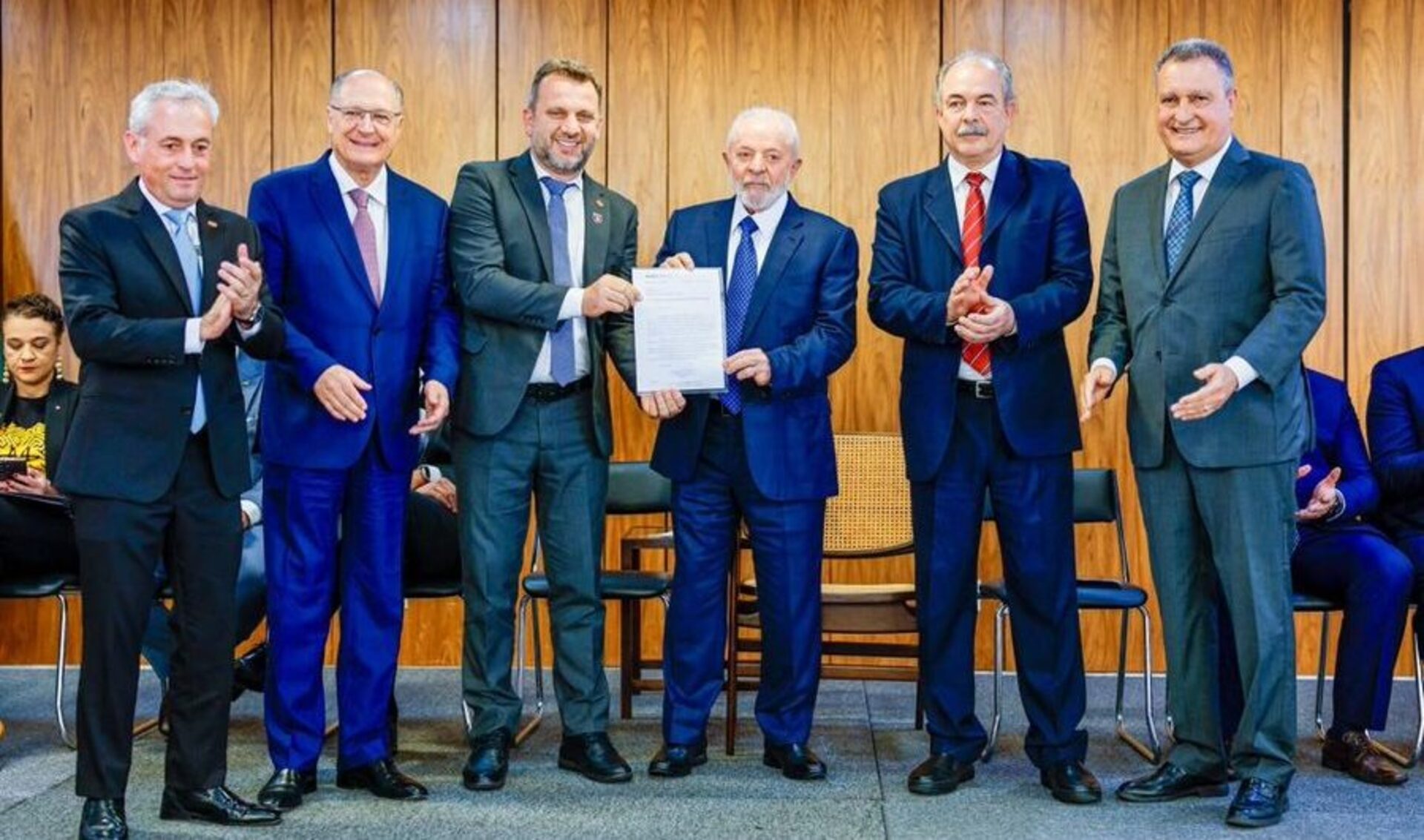 João Paulo Kleinübing, Geraldo Alckmin, Jerry Comper, Lula, Aloizio Mercadante e Rui Costa (Fotos: Divulgação/Governo Federal)