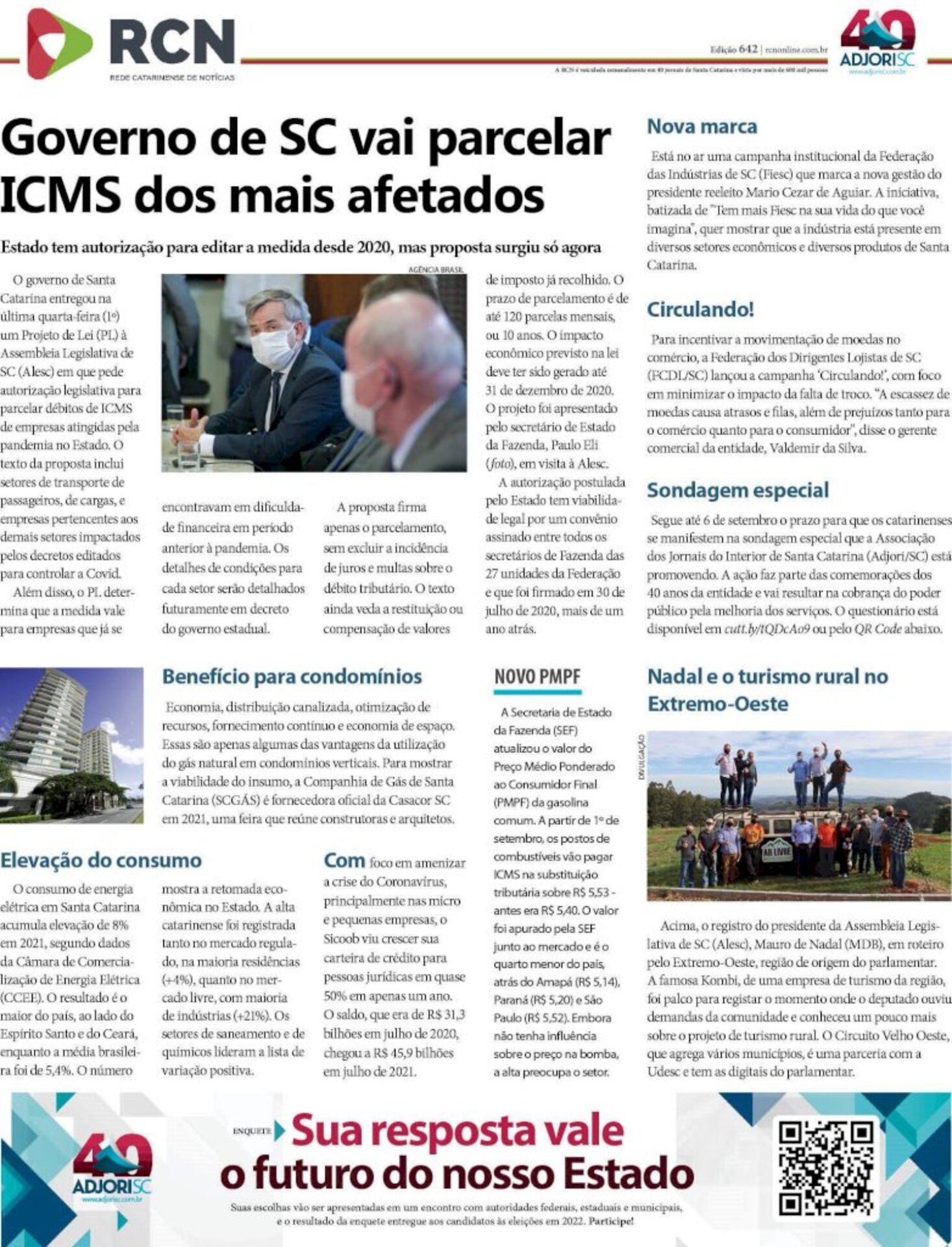 A publicação iniciou em 2002 e segue de forma ininterrupta até hoje. Já são mais de 600 edições contando os principais fatos de Santa Catarina. Ao lado, a página que circulou entre 1º e 3 de setembro de 2021.