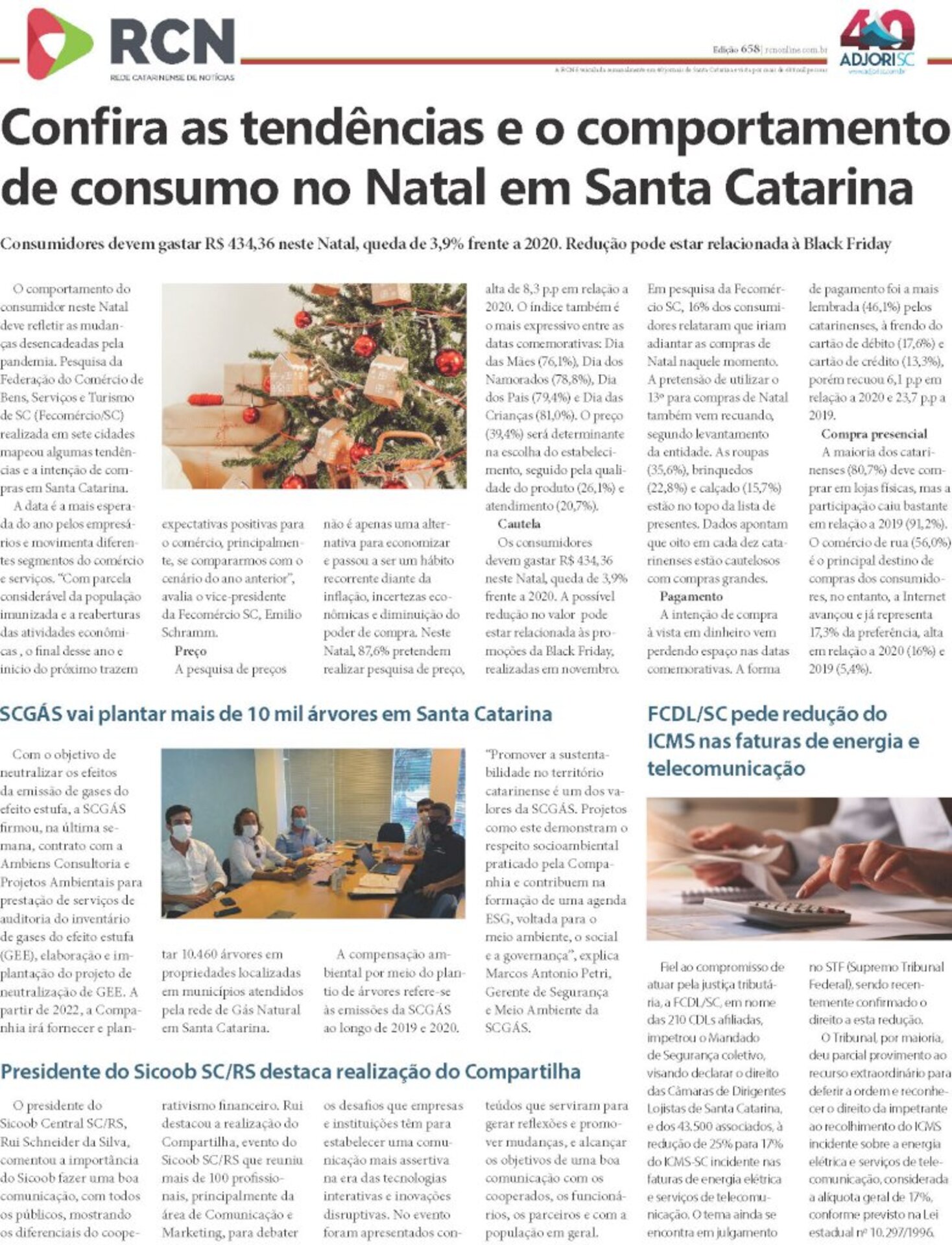 A página da Rede Catarinense de Notícias, elaborada pela Agência Adjori de Jornalismo, é o conteúdo impresso mais visto de Santa Catarina. Isso porque circula semanalmente em mais de 40 jornais de todas as regiões do Estado. A tiragem somada dos participantes supera 130 mil exemplares.