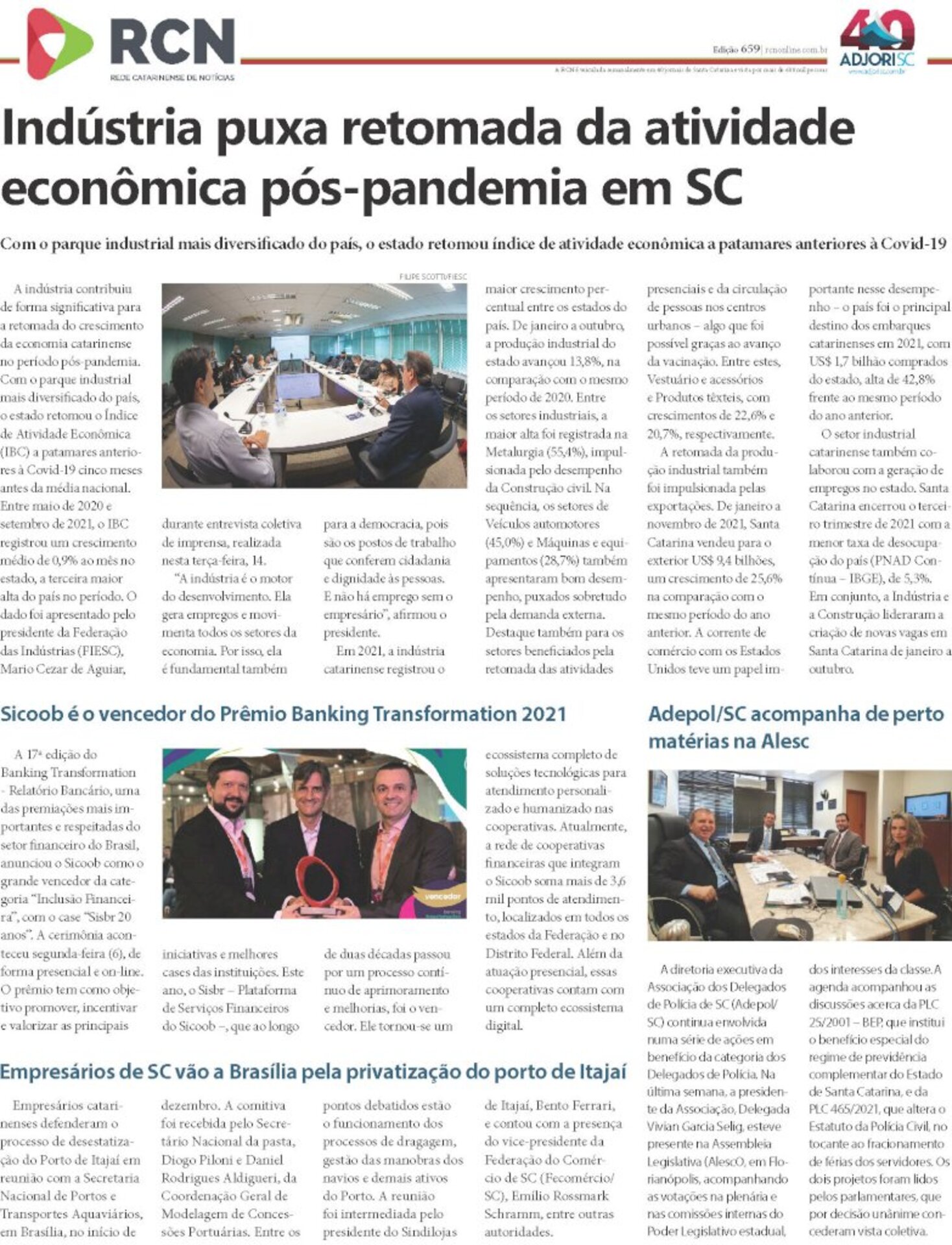 A página da Rede Catarinense de Notícias, elaborada pela Agência Adjori de Jornalismo, é o conteúdo impresso mais visto de Santa Catarina. Isso porque circula semanalmente em mais de 40 jornais de todas as regiões do Estado. A tiragem somada dos participantes supera 130 mil exemplares.