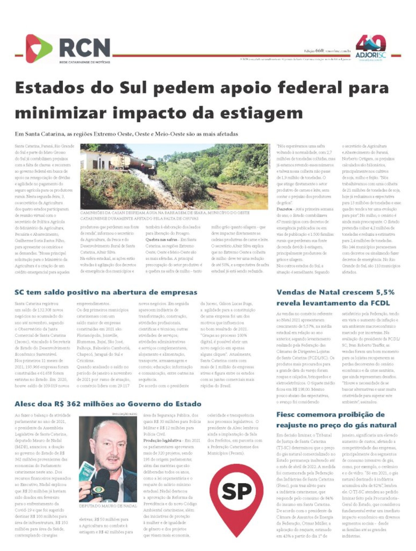 A página da Rede Catarinense de Notícias, elaborada pela Agência Adjori de Jornalismo, é o conteúdo impresso mais visto de Santa Catarina. Isso porque circula semanalmente em mais de 40 jornais de todas as regiões do Estado. A tiragem somada dos participantes supera 130 mil exemplares.