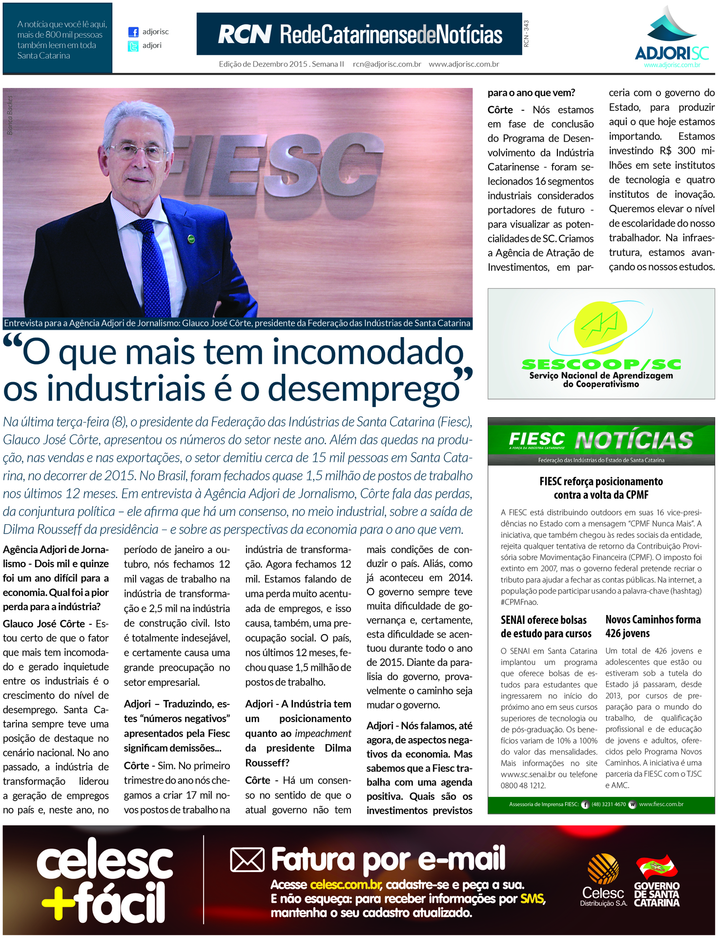 Esta página, encaminhada aos jornais integrantes da Rede Catarinense de Notícias, começou a ser veiculada em 10 de dezembro. Com cerca de 70 jornais incluídos, o grupo contabiliza, no total, tiragem de 220 mil exemplares e cerca de um milhão de leitores