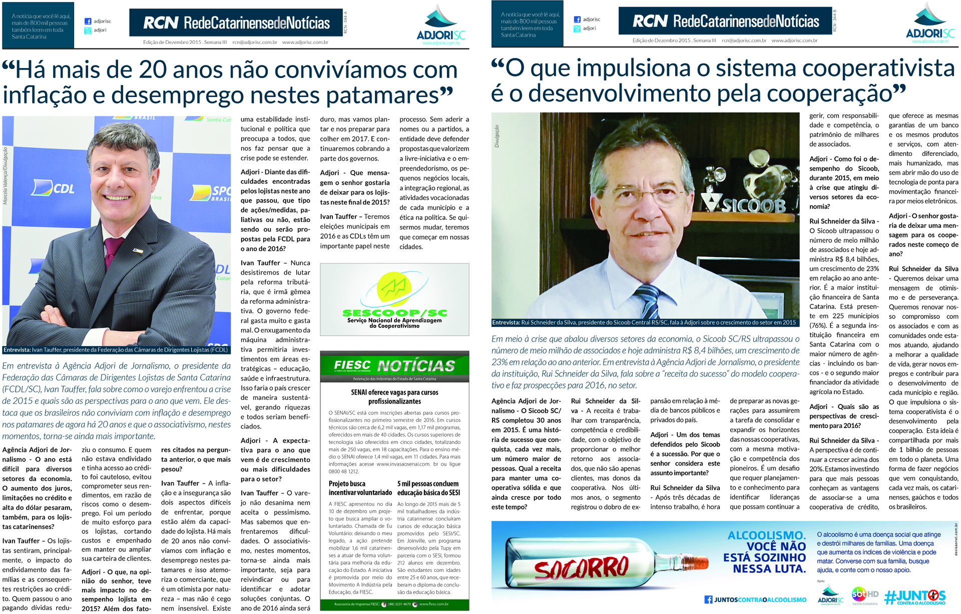 Estas páginas, encaminhadas aos jornais integrantes da Rede Catarinense de Notícias, começaram a ser veiculadas em 17 de dezembro. Com cerca de 70 jornais incluídos, o grupo contabiliza, no total, tiragem de 220 mil exemplares e cerca de um milhão de leit
