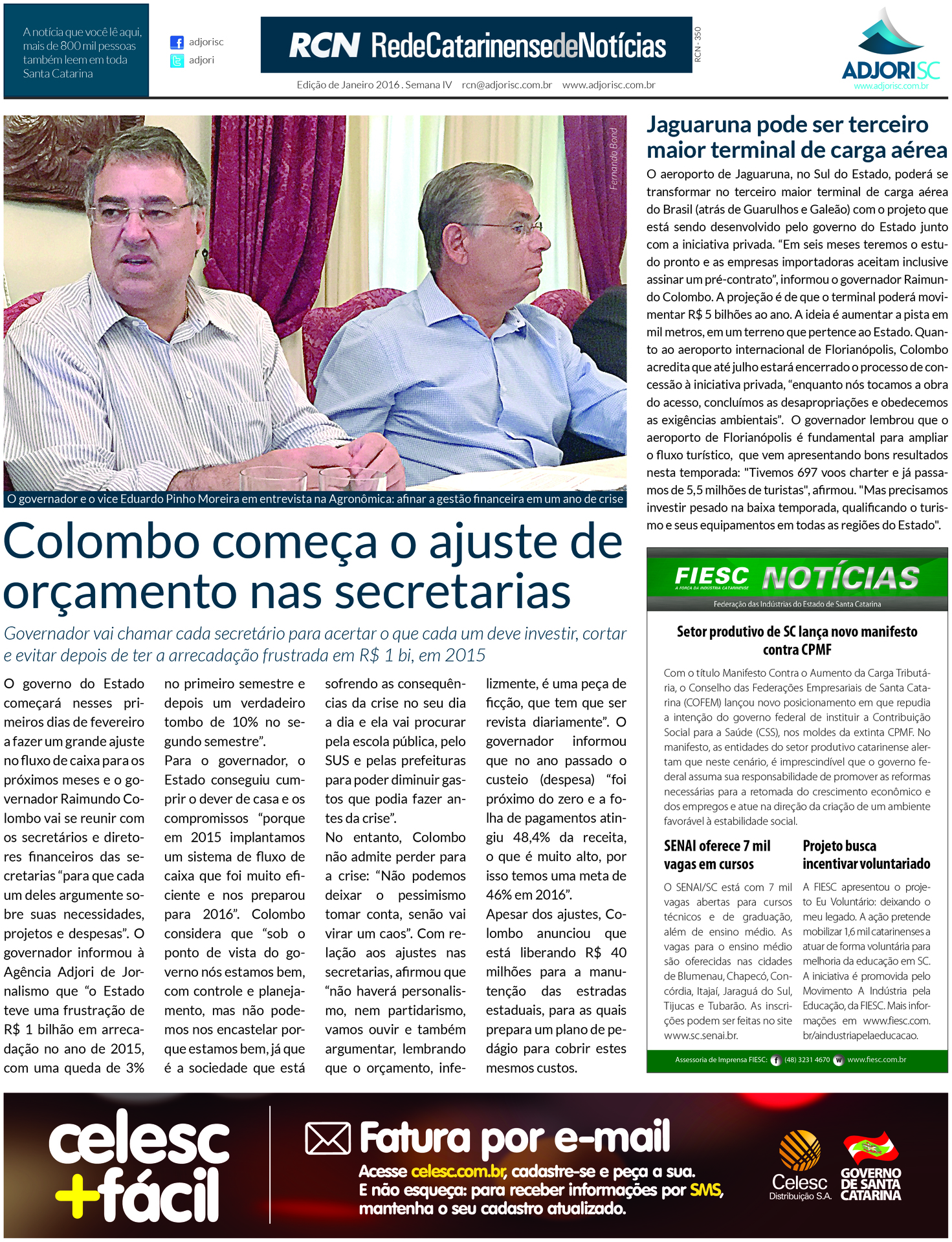 Esta página, encaminhada aos jornais integrante da Rede Catarinense de Notícias, começou a ser veiculada em 28 de janeiro. Com cerca de 70 jornais incluídos, o grupo contabiliza, no total, tiragem de 220 mil exemplares e cerca de um milhão de leitores