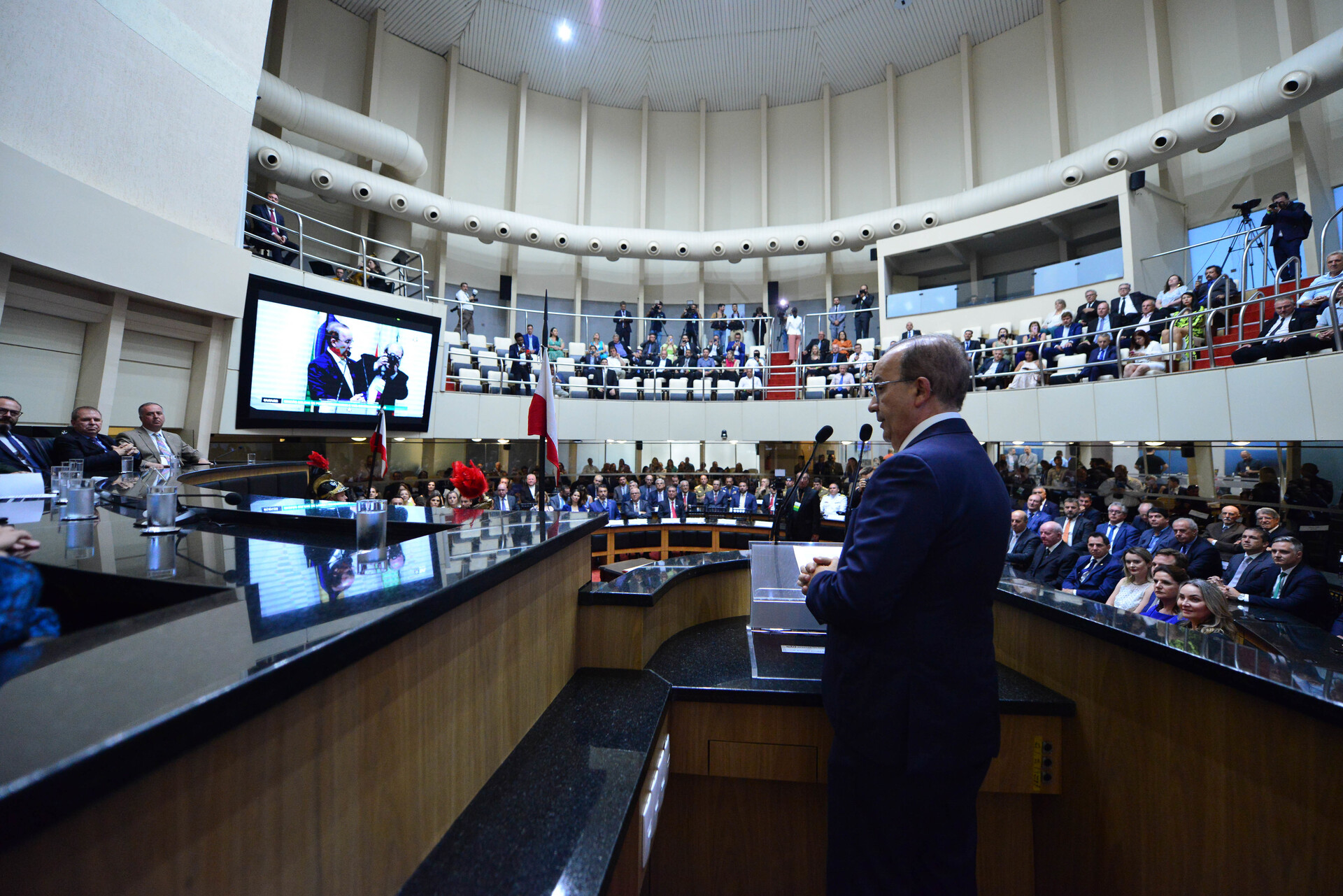 A cerimônia de posse do governador Jorginho Mello (PL) e da vice-governadora Marilisa Boehm (PL) aberta pelo presidente da Assembleia Legislativa do Estado de Santa Catarina, Moacir Sopelsa (MDB), dia 1º de janeiro, no Plenário Osni Régis, reuniu mais de 50 autoridades civis e militares, entre ex-governadores, senadores, deputados federais, deputados estaduais, desembargadores, conselheiros do Tribunal de Contas, prefeitos e secretários de Estado.