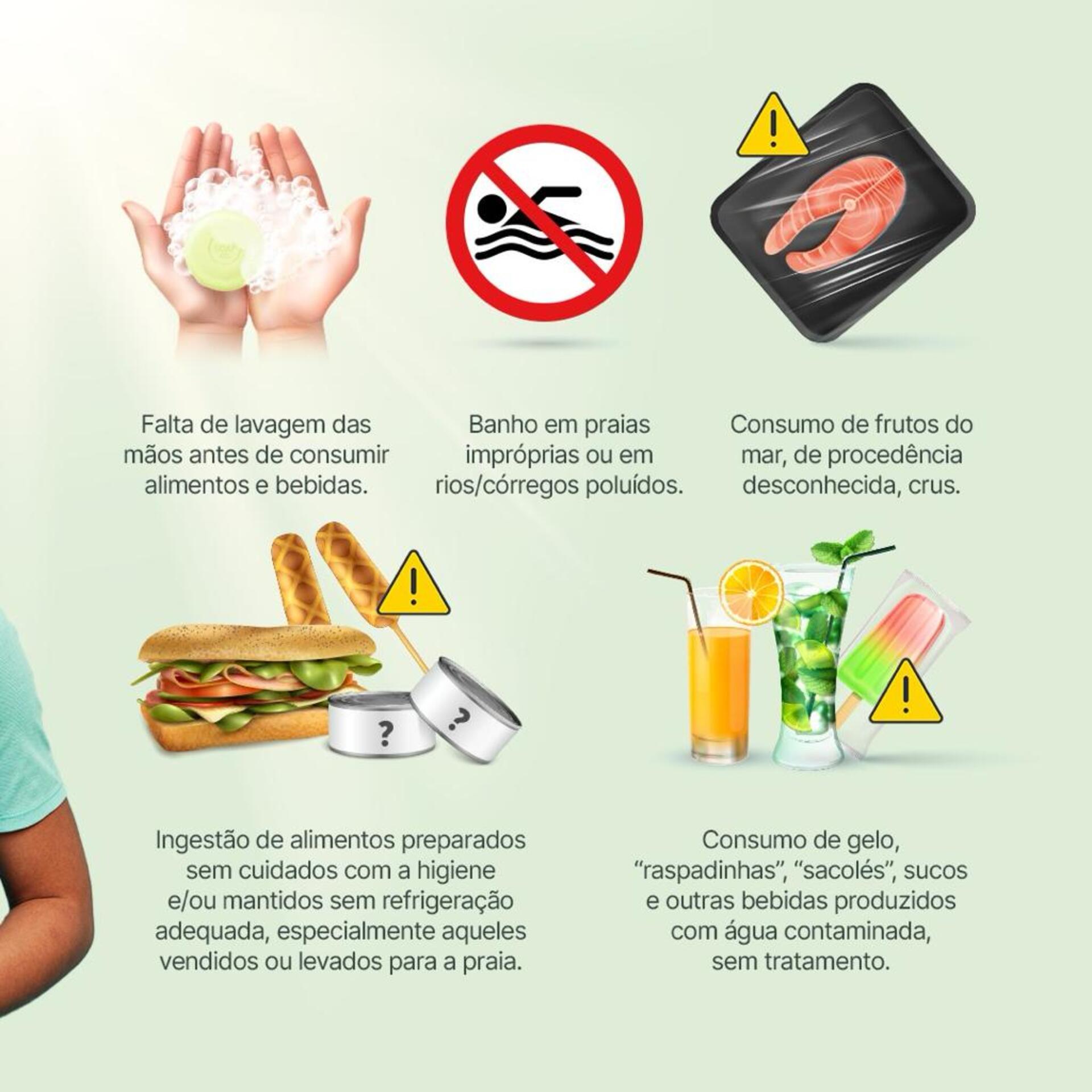 Elas podem ser causadas por vírus, bactérias e parasitas e costumam infectar a população em decorrência do descuido com a higiene, como não lavar as mãos com frequência, especialmente antes de se alimentar; da ingestão de alimentos de procedência desconhecida, com destaque para os frutos do mar, ou bebidas produzidas com ingredientes contaminados; pela falta de conservação térmica de comidas, que favorece a multiplicação de microrganismos e a liberação de toxinas que causam danos à saúde; ao tomar banho em praias impróprias ou em rios/córregos poluídos. Sendo assim, alguns cuidados são necessários para evitar o adoecimento e a transmissão para outras pessoas, como: