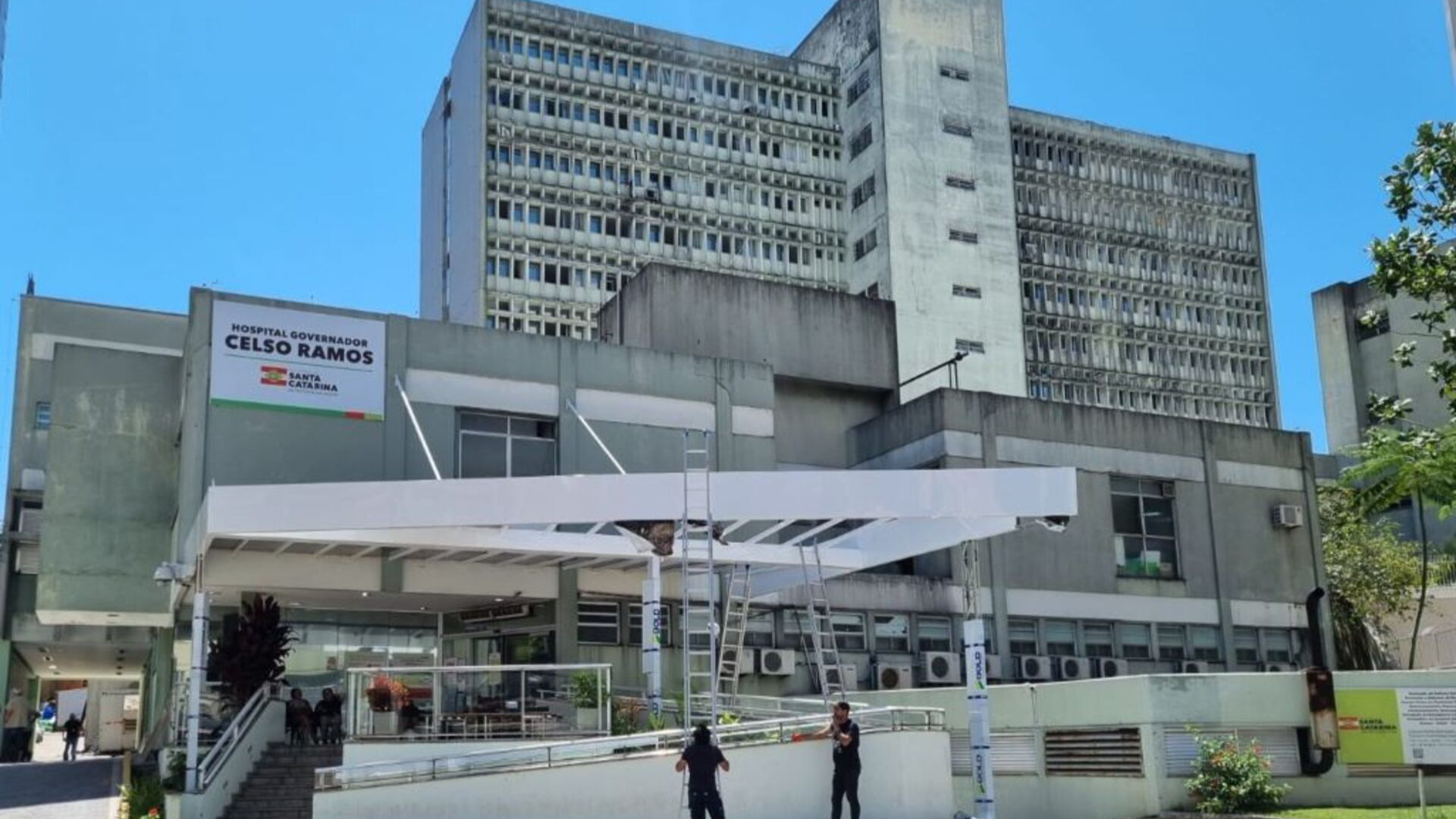 Além disso, no mesmo dia foi finalizada a colocação da cobertura em frente à Emergência. A proteção contra a chuva e o sol irá proporcionar mais conforto aos pacientes e familiares que chegam e aguardam por atendimento na emergência.
